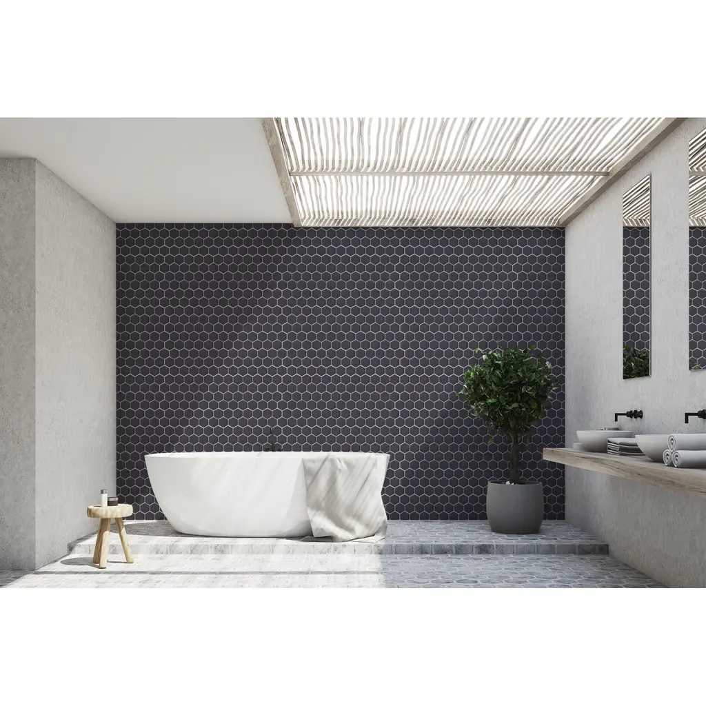 Personalize your space with our 11.80 in. x 12 2 in. Hexagon Porcelain Mosaic Tile. As a modern, enlarged deviation from the classic hexagon mosaic, this tile option is a throwback to traditional retro design with a contemporary feel. Use this hexagon mosaic as a kitchen backsplash, or on your bathroom walls. Perfect for both modern and traditional spaces. This minimalistic geometric porcelain mosaic is unique yet simplistic enough to integrate into any design, ranging from.What's Included?Product Details Sample Details
