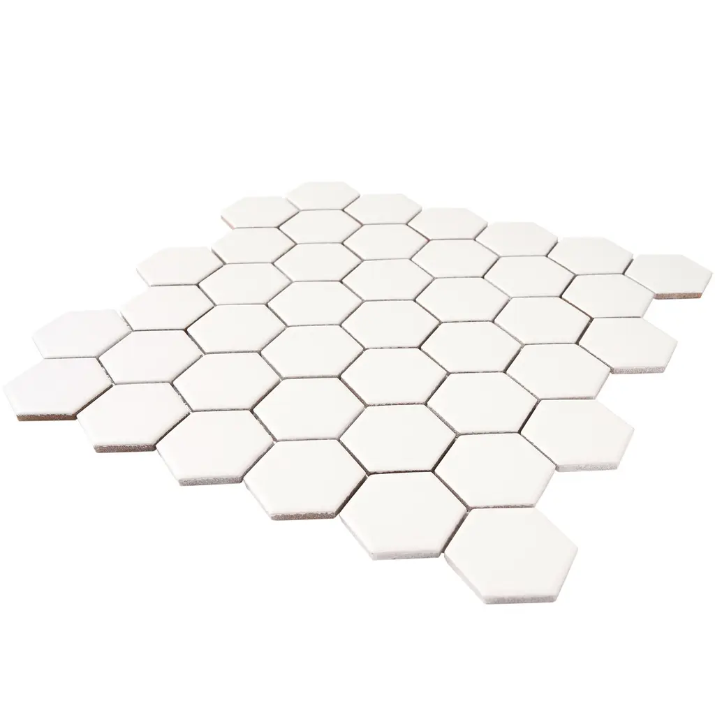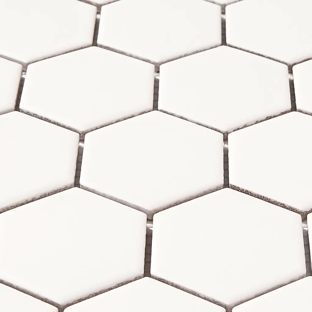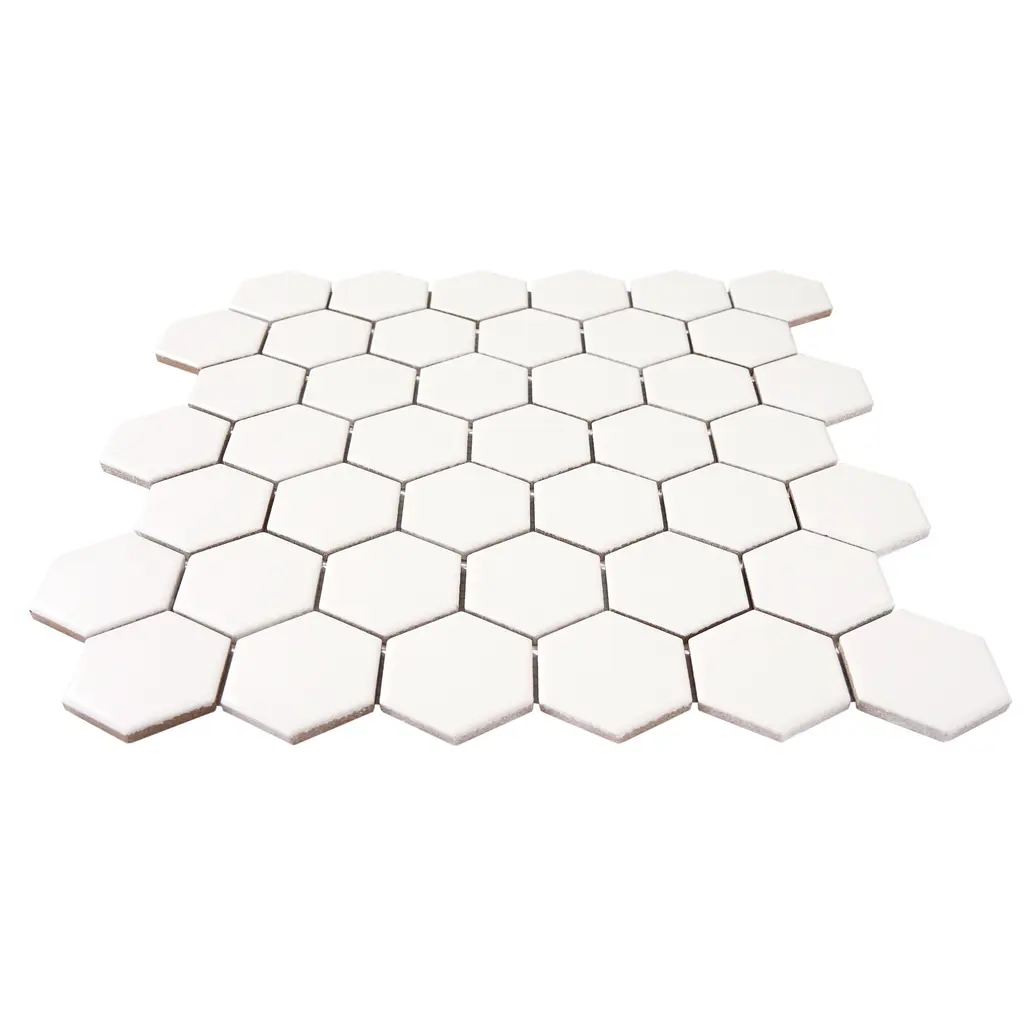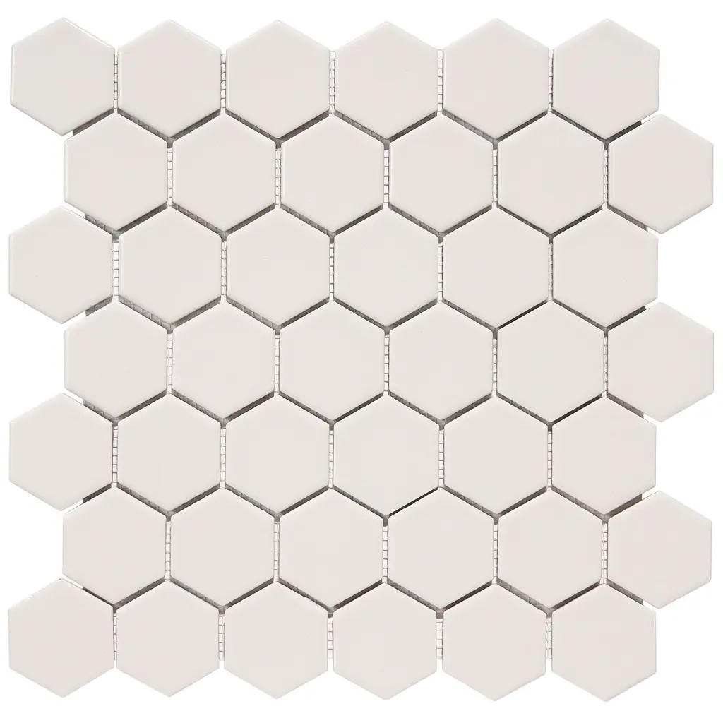2" X 2" Hexagon Honeycomb Glossy Porceain Mosaic Tile - 5 Sheets (4.90 Sf) - Matte - White