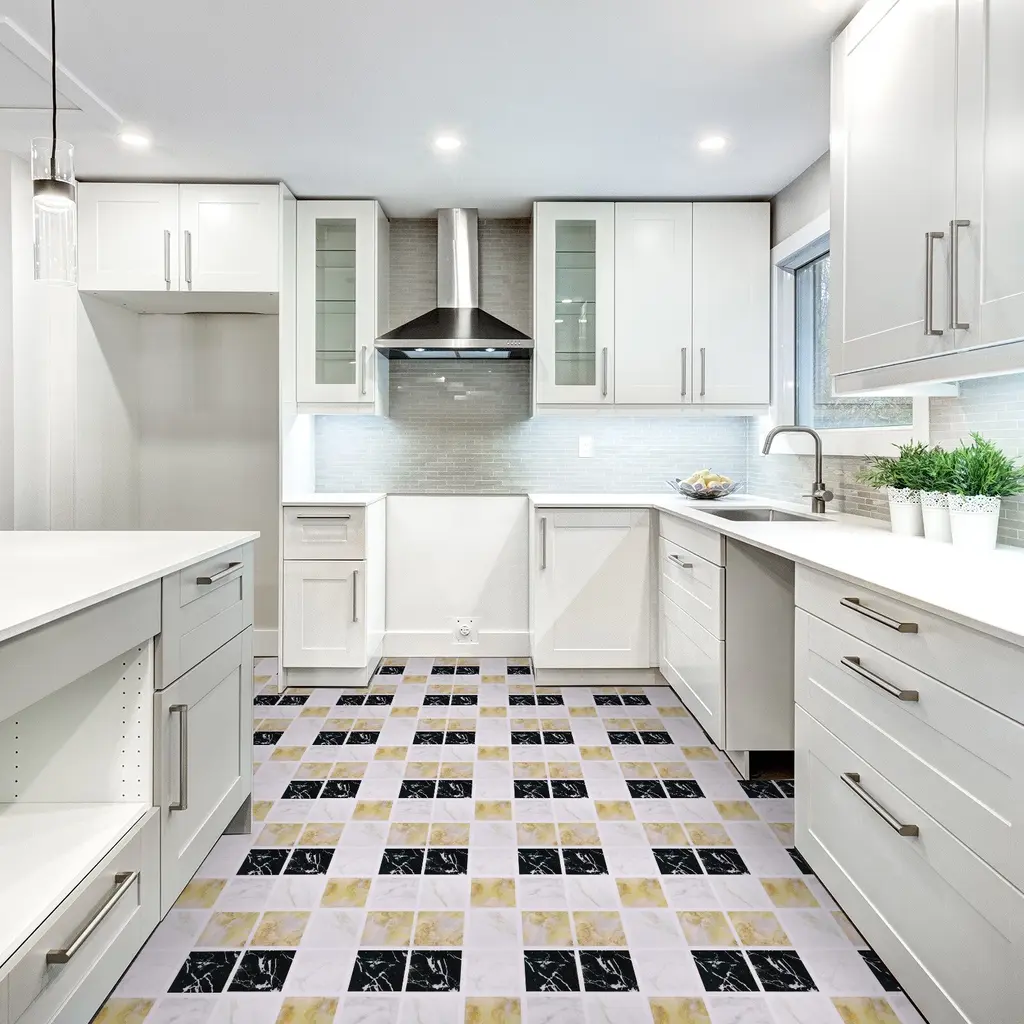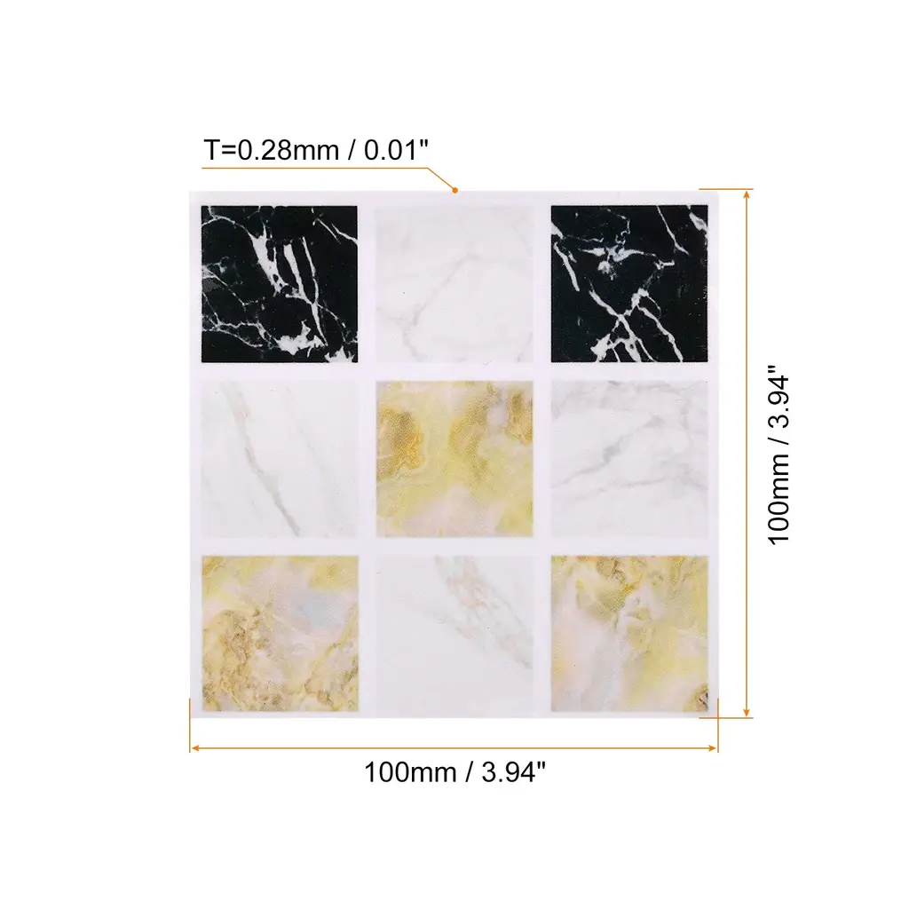 Description:[Material] Self-adhesive backsplash is PVC material, with strong adhesion, the surface has a frosted texture, and the corners do not lift up and are more sticky with the use.[Peel and Stick] Peel and stick backsplash tile stickers can be pulled directly when removed, doing no harm to the original floors; No tools, all do is peel the backing and then stick it on the floor. Trim it if needed.[Features] Easy to clean, durable, and requires no maintenance, waterproof, scratch, and dent-resistant. It is perfect for active homes with busy kitchens, entries, and living areas. give your space a fresh new look.[Multi-Purpose] Peel and stick backsplash can be used indoors for floors, bathrooms, bedrooms, kitchens, balconies, living rooms, offices, furniture, cabinets, garage, etc.Specifications:Material: PVC MaterialSize: 100x100x0.28mm/3.94"x3.94"x0.01"(LxWxT)Color: Yellow+Marble WhitePackage Includes:25 x Peel and Stick Tile Stickers DIY