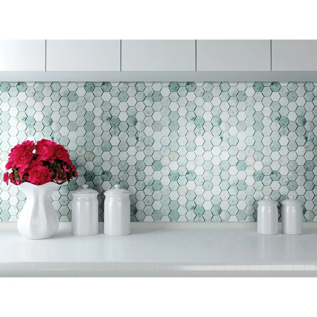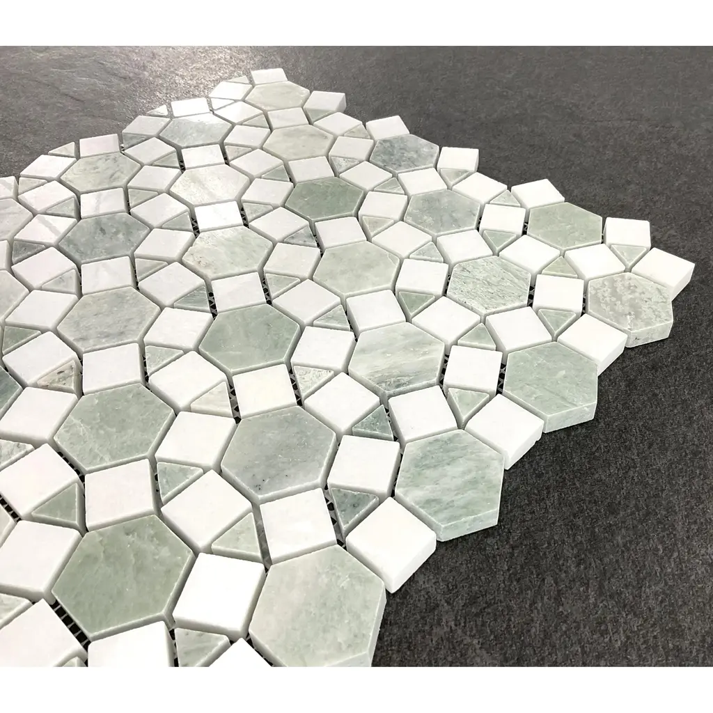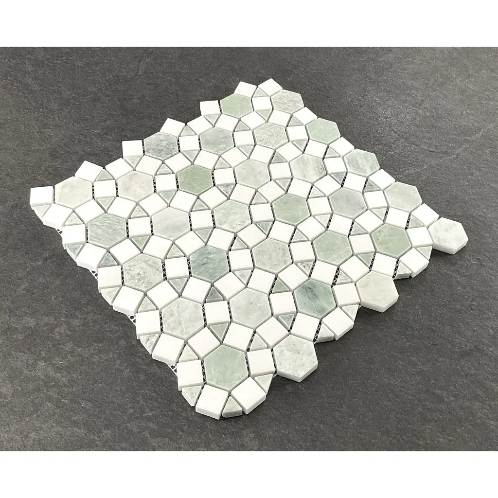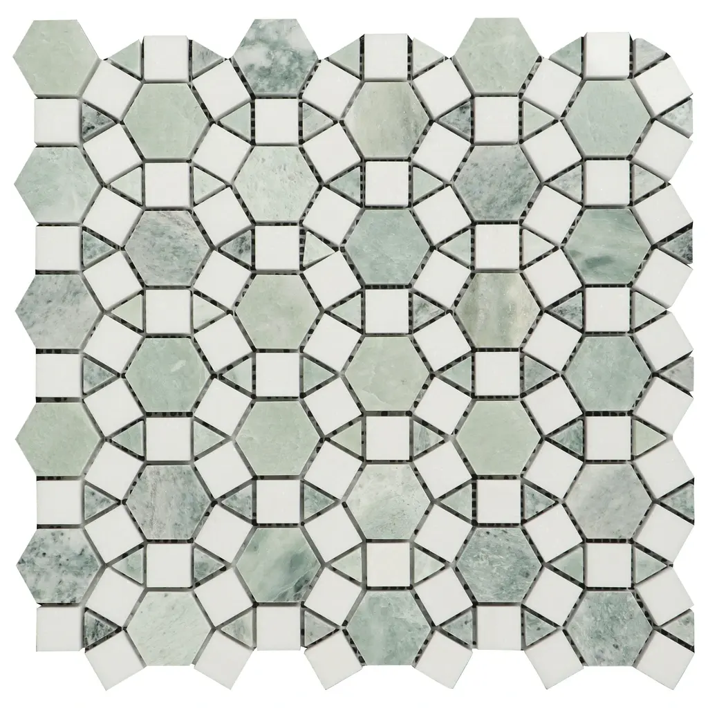 Color: Thassos White and Ming Green Marble Overall Product Weight: 4 lb. Dimensions Mosaic Sheet: 12.75'' W X 12'' L Individual Tile: 3.25'' W X 3.25'' L Overall Thickness: 0.32 Finish: PolishedSurface Area per Carton: 10.5 SqFt It is mesh-mounted for easy installation. Installation Area: Kitchen Backsplash, Fireplace Front, Bathroom Wall, Bathroom Floor, Shower Wall, Shower Floor