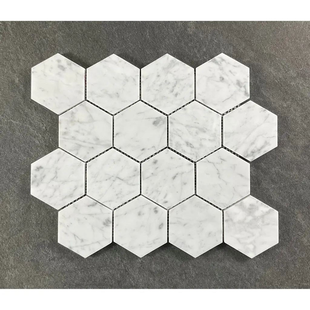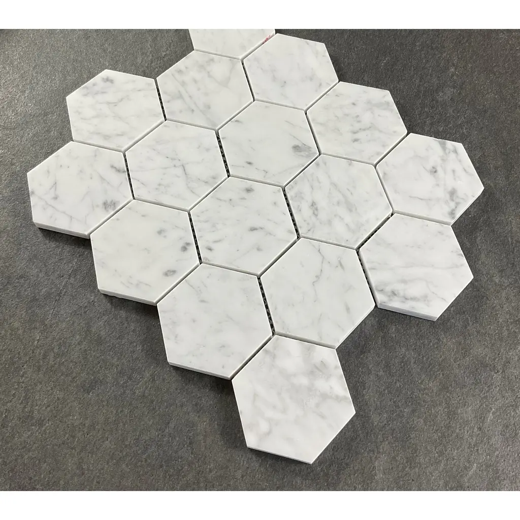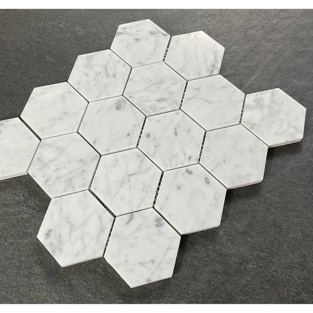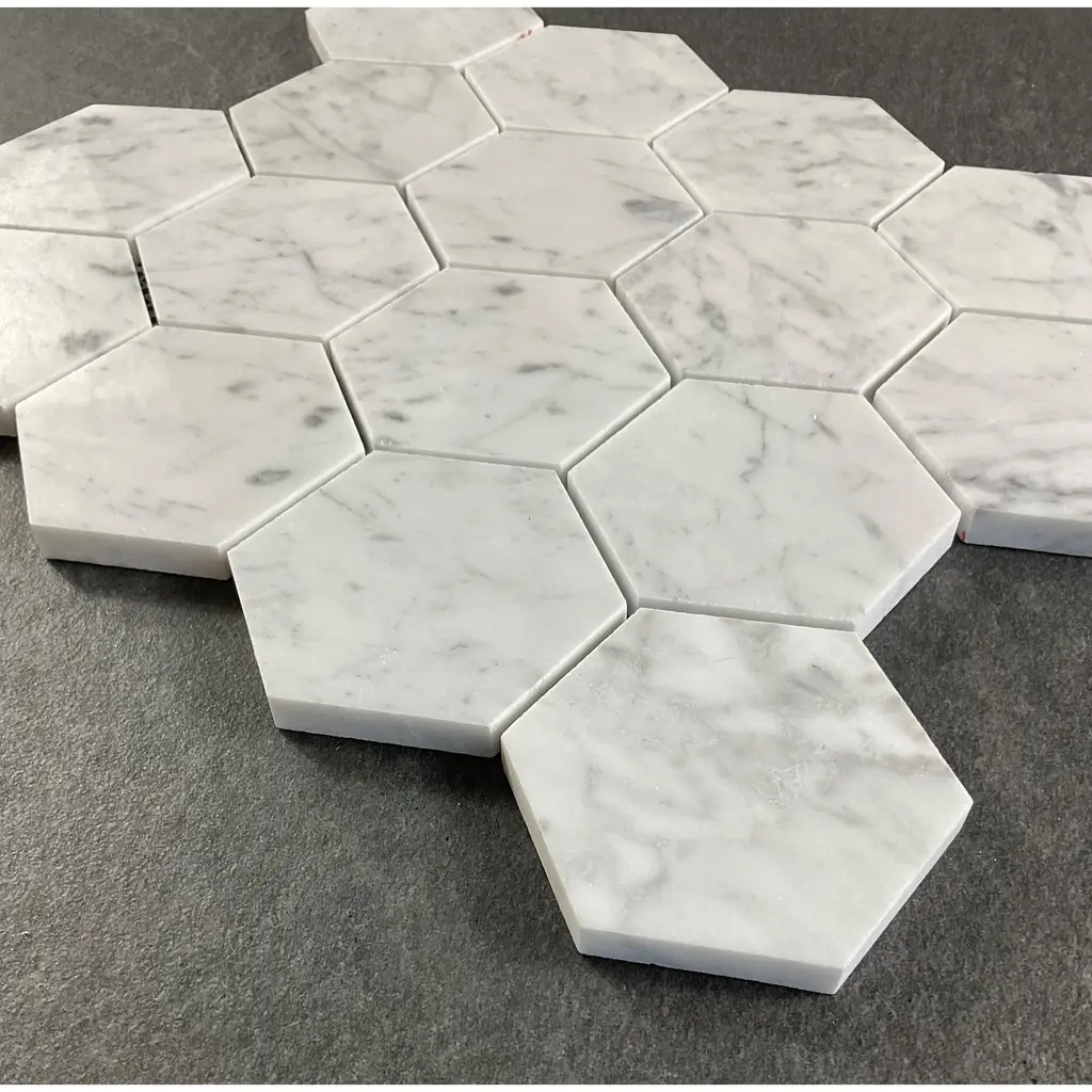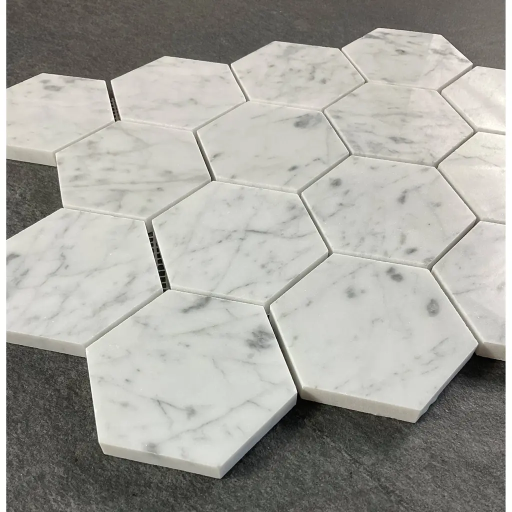 3" Hexagon Marble Wall And Floor Tiles - Case (5 Sheets) - Thassos White