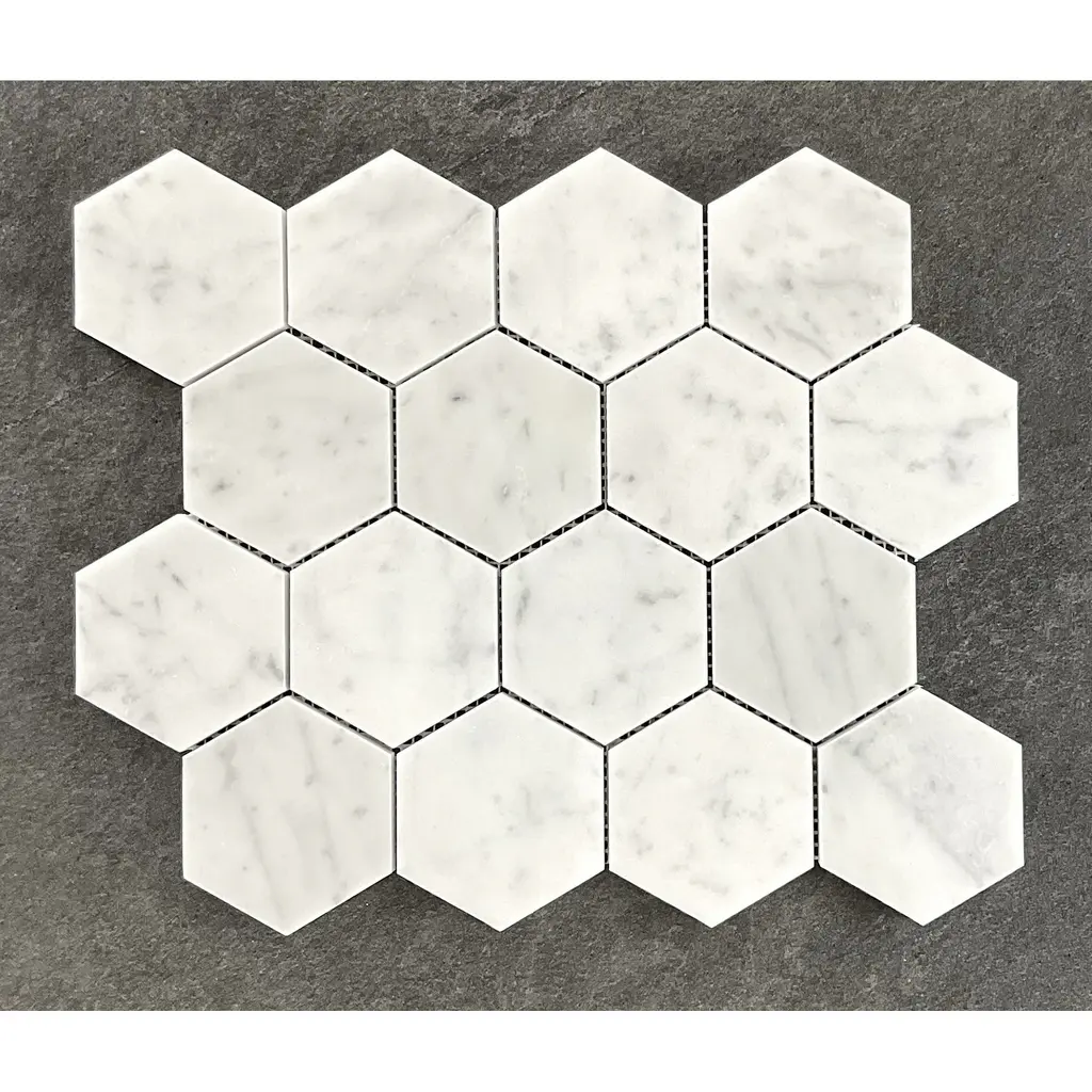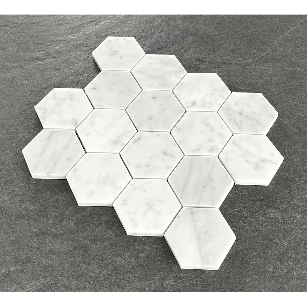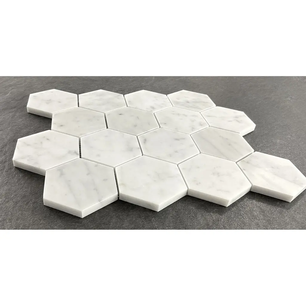 3" Honed Hexagon Marble Mosaic Tiles - Case (5 Sheets) - White Carrara (Honed)