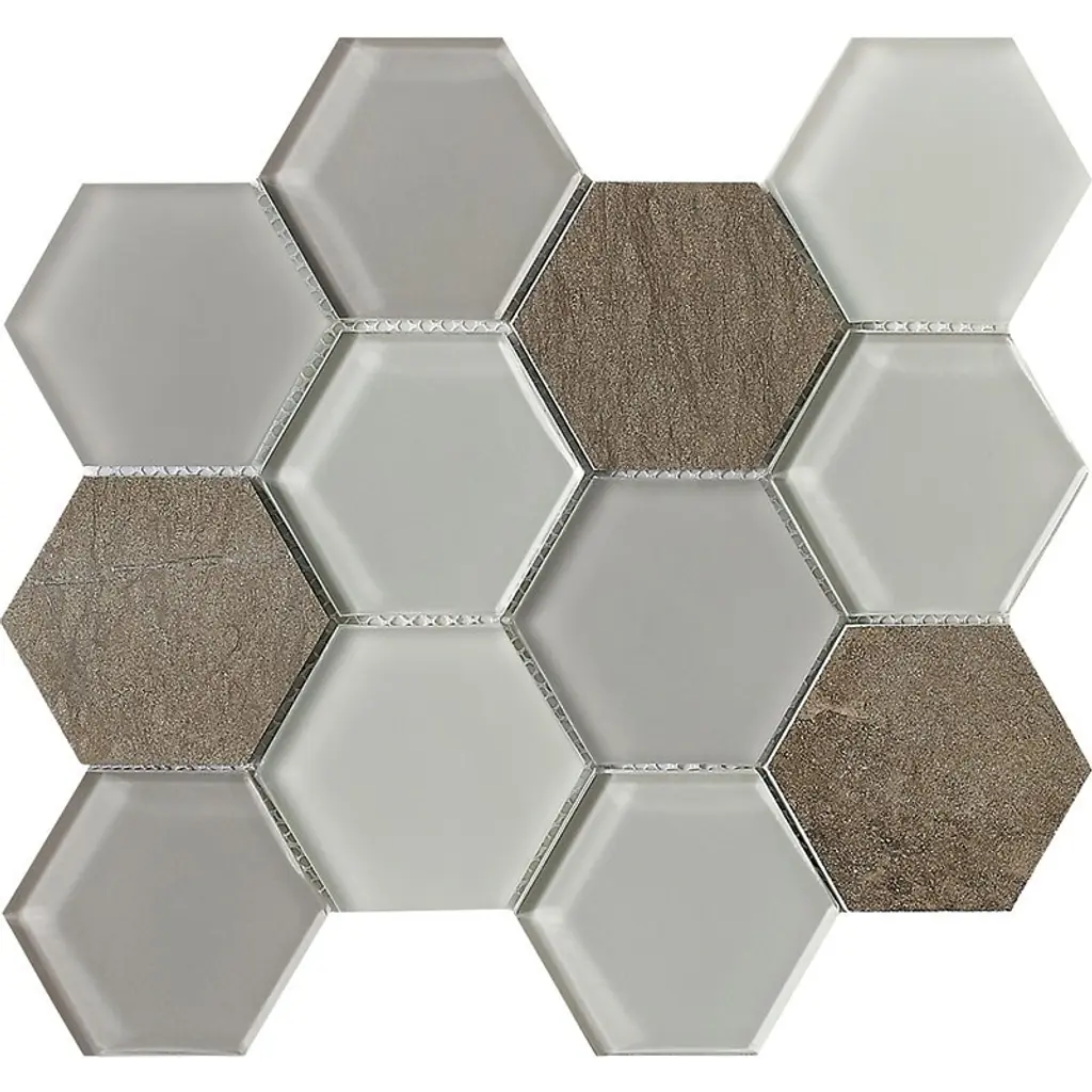 3''x3'' Honeycomb Blend Mosaic Tile is a type of wall and floor tile that is designed to create a unique and visually interesting surface. The tile features a classic hexagon shape, with each tile measuring three inches from corner to corner. The blend is made up of a combination of different natural stone materials, that are carefully selected and blended together to create a distinctive look. The blend comes in a range of colors, including warm beiges, cool grays, and rich browns, and has a natural, matte finish. Park Central 3 Inch Hexagon Blend is a popular choice for creating a custom look in bathrooms, kitchens, and other interior spaces, and can be used on both walls and floors to create a cohesive design.What's included?Product Details Sample Details