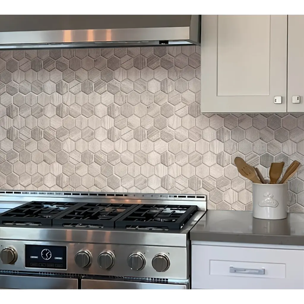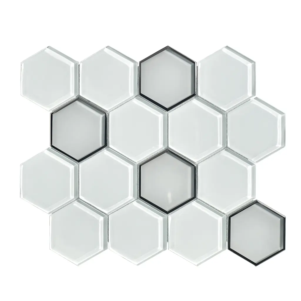 3" X 3" White Glass With Glazed Edges Honeycomb Mosaic Wall Tile - 1 Case (10 Sheets) - 1 Case (10 Sheets) - White And Grey (With Glazed Edge)