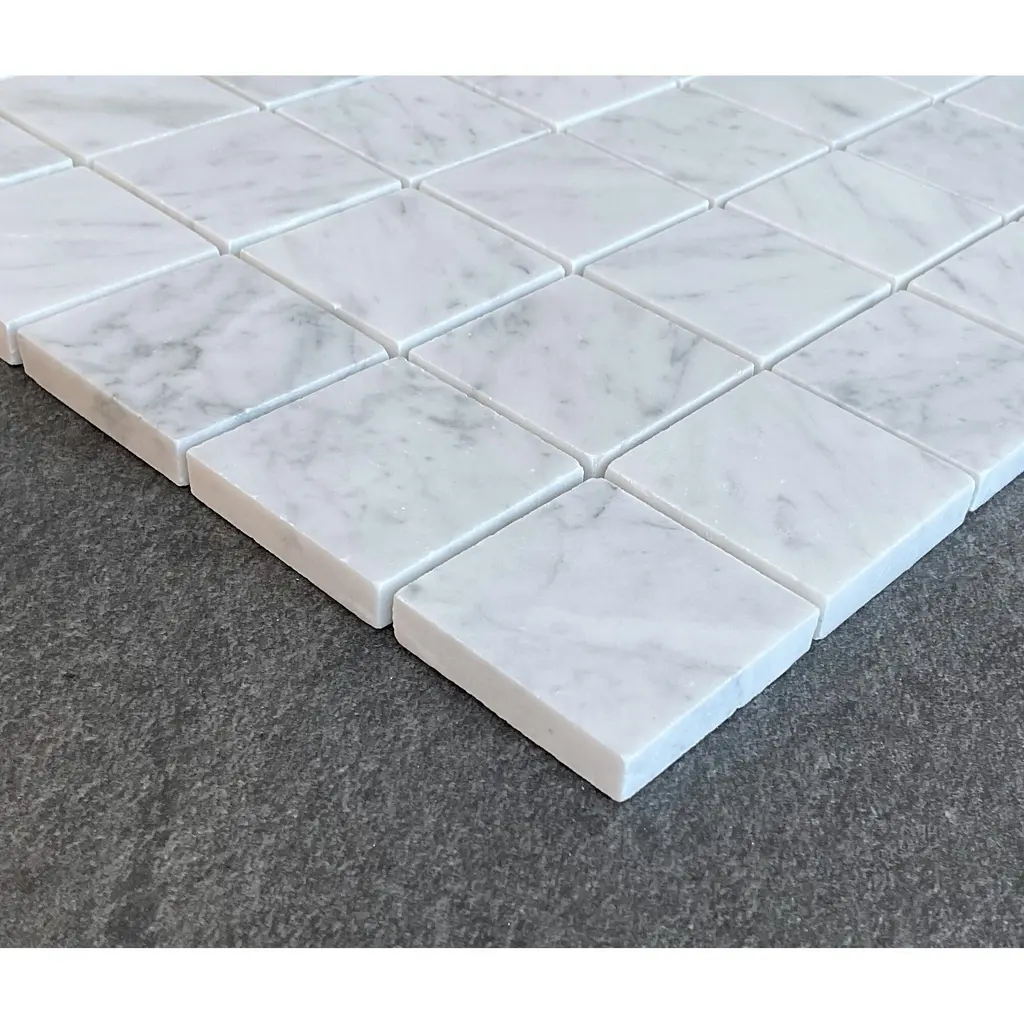 3/8 X 3/8 Grid Groutless Marble Mosaic Tiles - Case (10 Sheets) - White Carrara