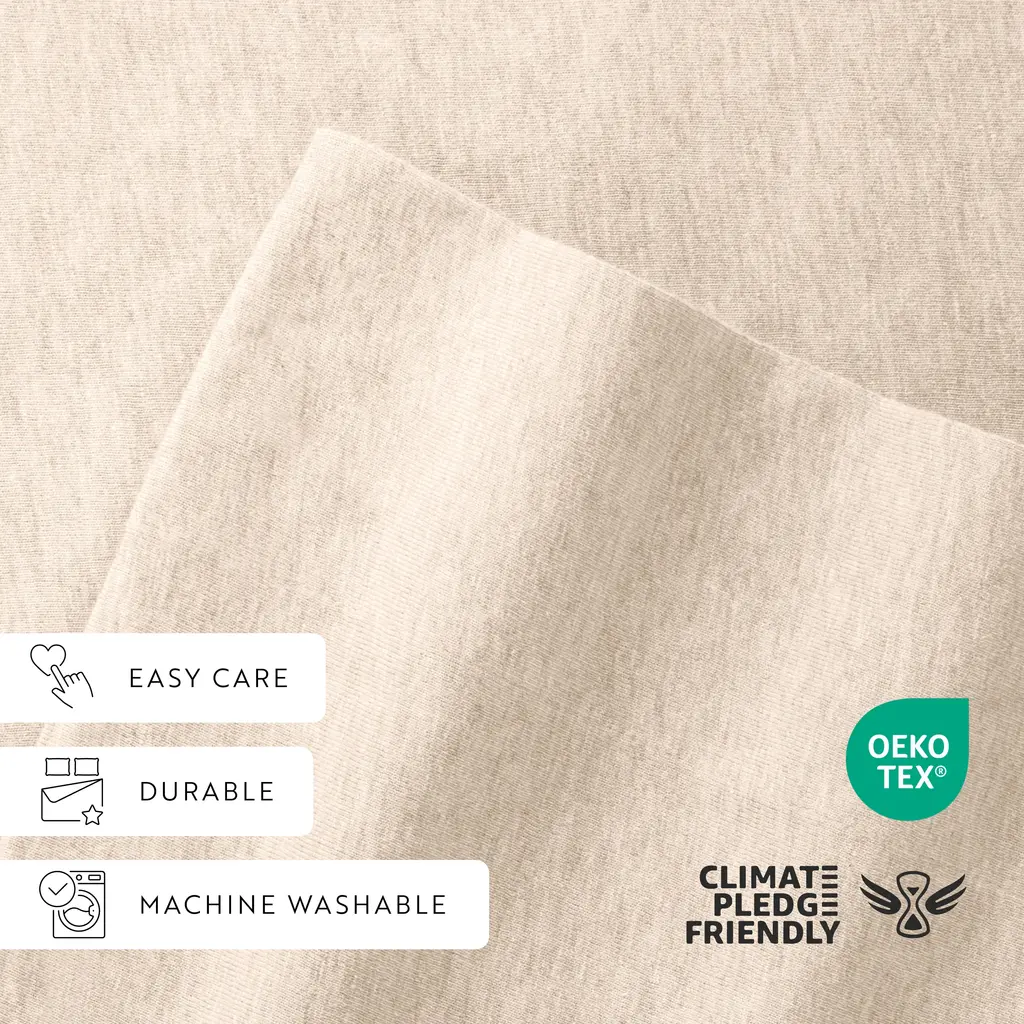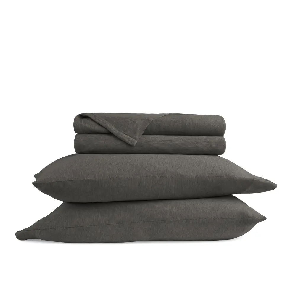 Enhance your sleeping experience with our ultra-soft and comfortable Jersey Knit Sheet Set, available in a range of soothing colors. Made from 100% Cotton, these sheets are exceptionally soft and breathable, providing the perfect blend of warmth and comfort, ideal for year-round use. The jersey fabric offers a cozy, four-way stretch, like your favorite super soft t-shirt! With its durable and stretchy nature, this sheet set ensures a snug fit on your mattress and delivers a restful night's sleep in luxurious comfort.