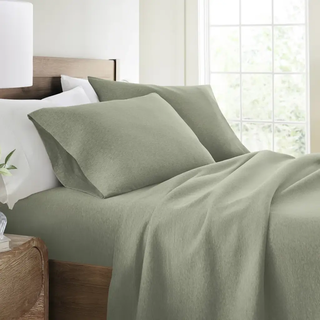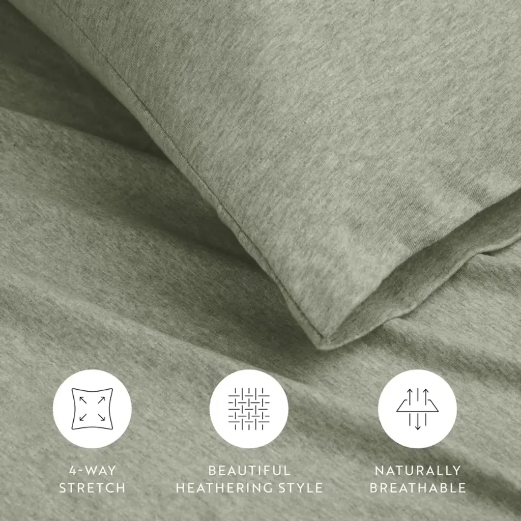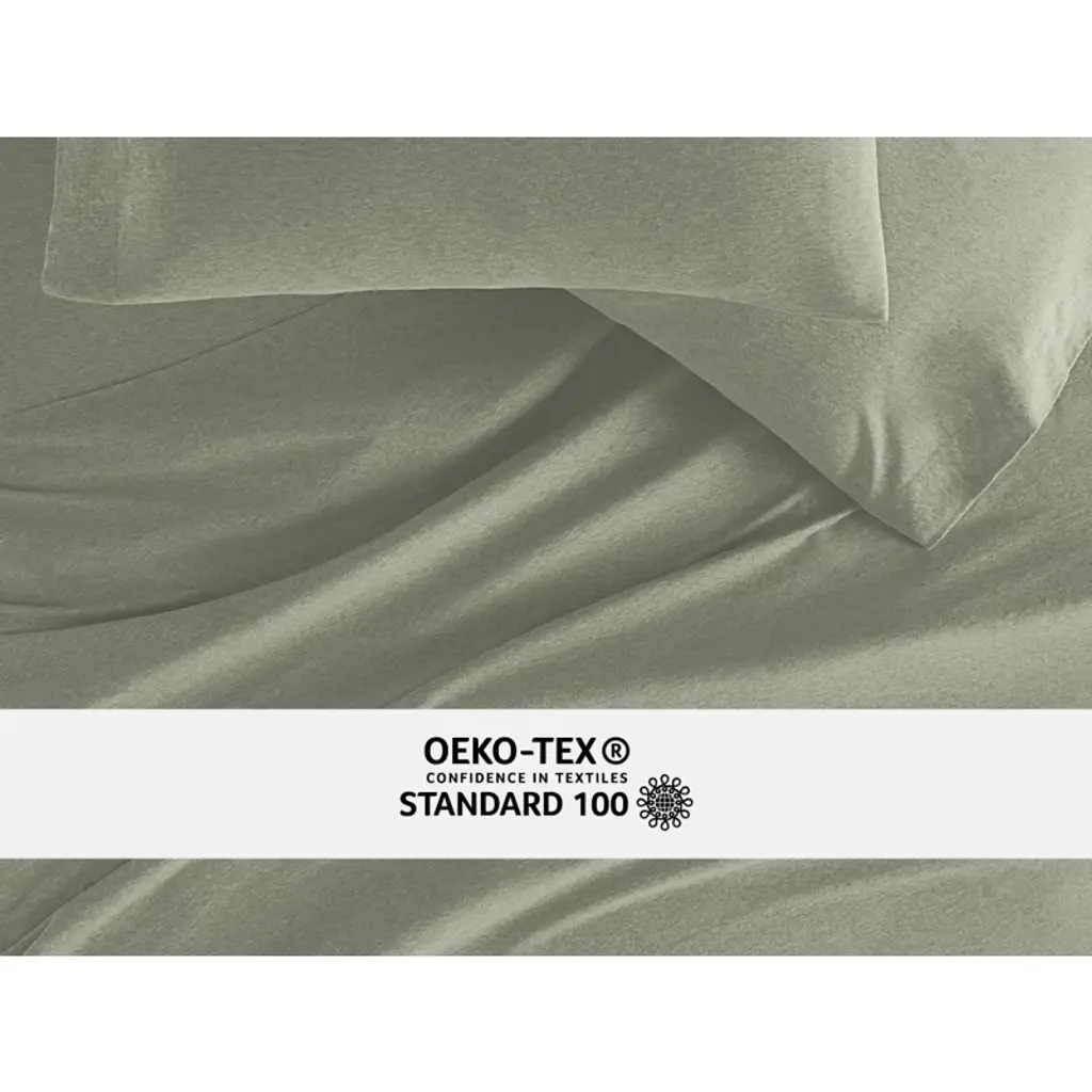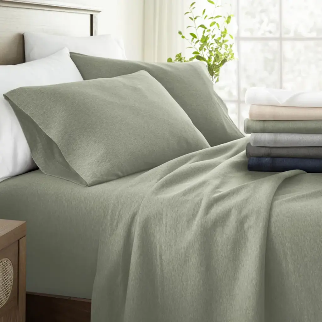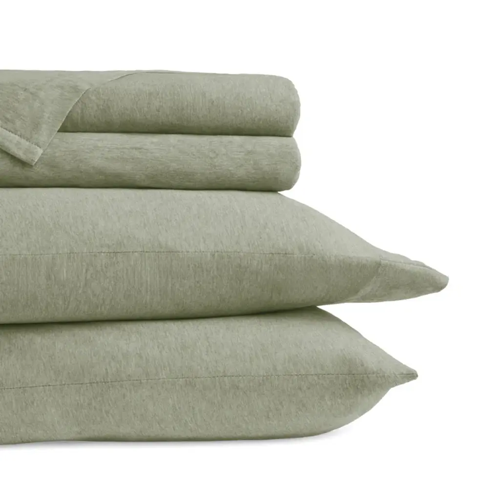 Enhance your sleeping experience with our ultra-soft and comfortable Jersey Knit Sheet Set, available in a range of soothing colors. Made from 100% cotton, these sheets are exceptionally soft and breathable, providing the perfect blend of warmth and comfort, ideal for year-round use. The jersey fabric offers a cozy, four-way stretch, like your favorite super soft t-shirt! With its durable and stretchy nature, this sheet set ensures a snug fit on your mattress and delivers a restful night's sleep in luxurious comfort. Each sheet set features a heathered texture to add dimension to your bedding and looks great in any master bedroom, kids' room, college dorm room or guest room.