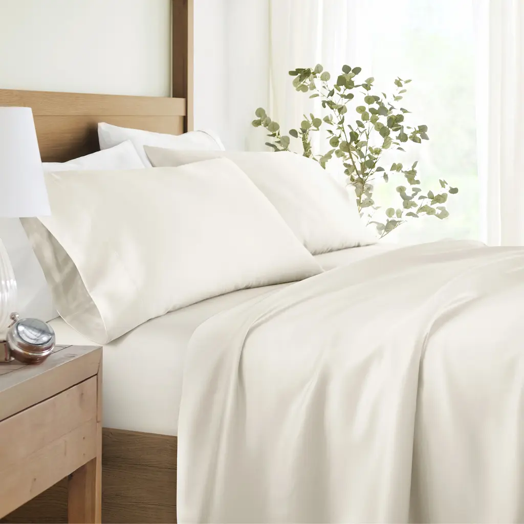 Drift off to sleep with this silky smooth bamboo sheet set. Made from 100 percent rayon from sustainably sourced bamboo, this set is amazingly soft, naturally breathable and twice as strong as cotton. Available in a variety of colors you're sure to find the perfect set to give your bedding some added comfort and style.