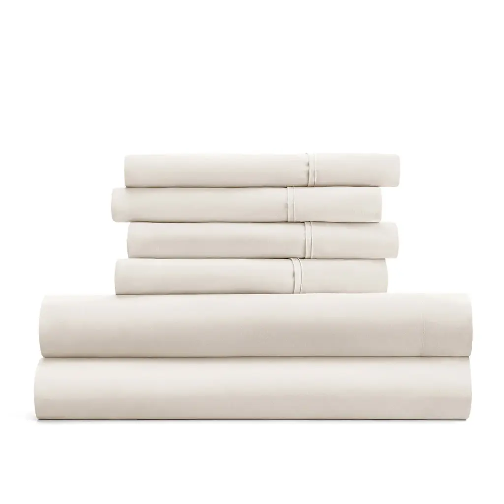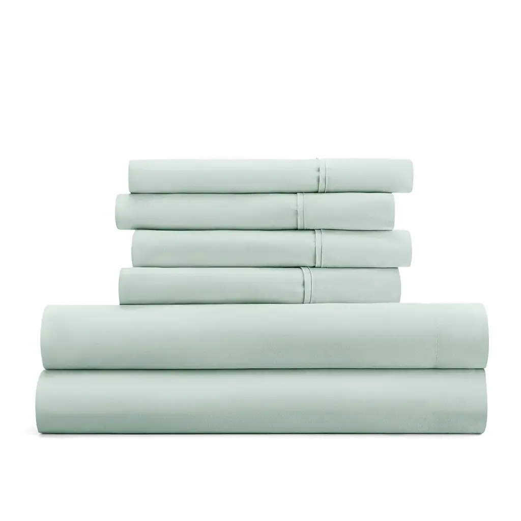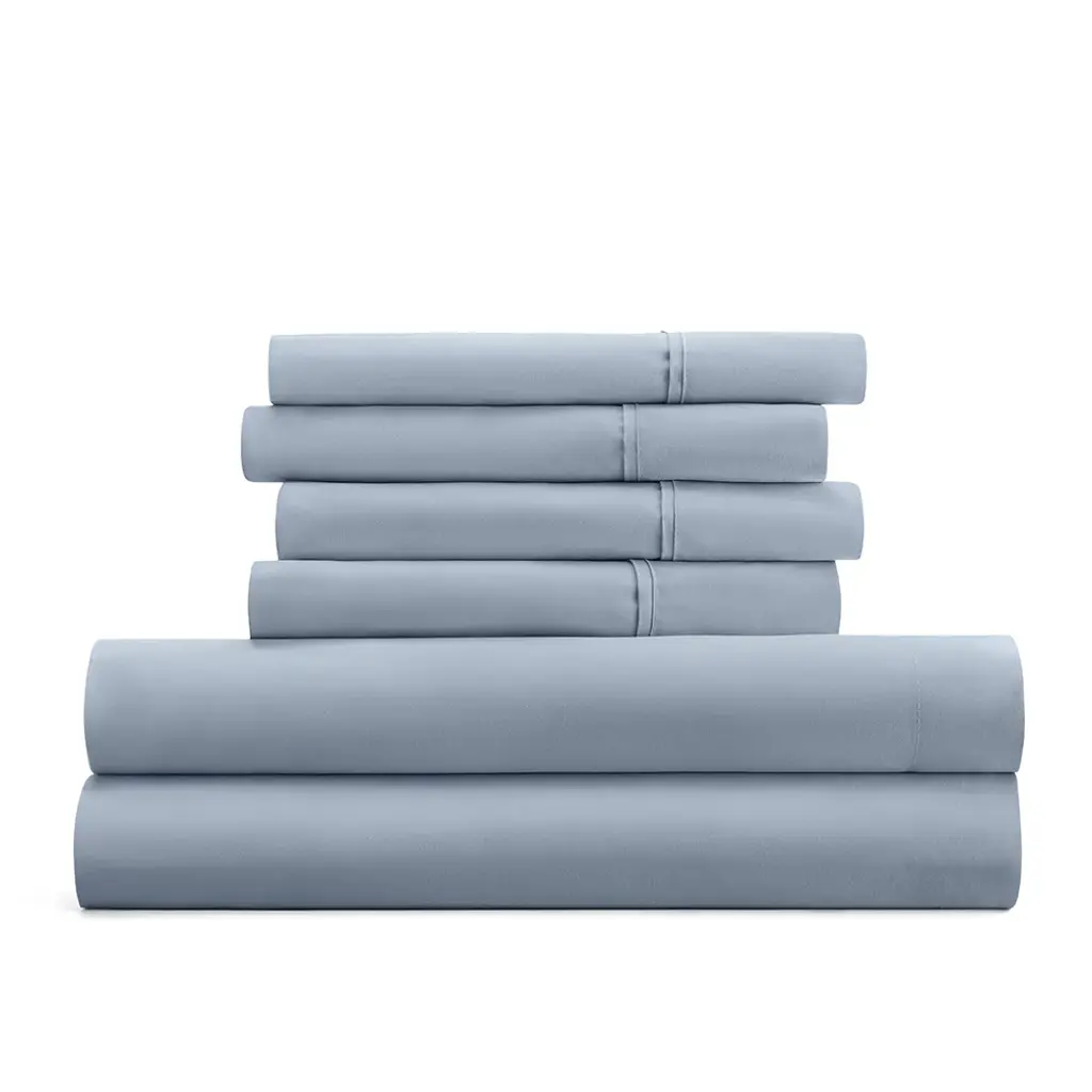 Treat yourself to a fresh new set of sheets with this 6-piece sheet set. Our premium set is twice as durable as cotton, wrinkle resistant and an ideal choice for those with sensitive skin or allergies. Available in a variety of colors, from subtle shades to vibrant rich tones. Each piece is double brushed for an ultra soft and cozy feel, making it the perfect new addition to your room!