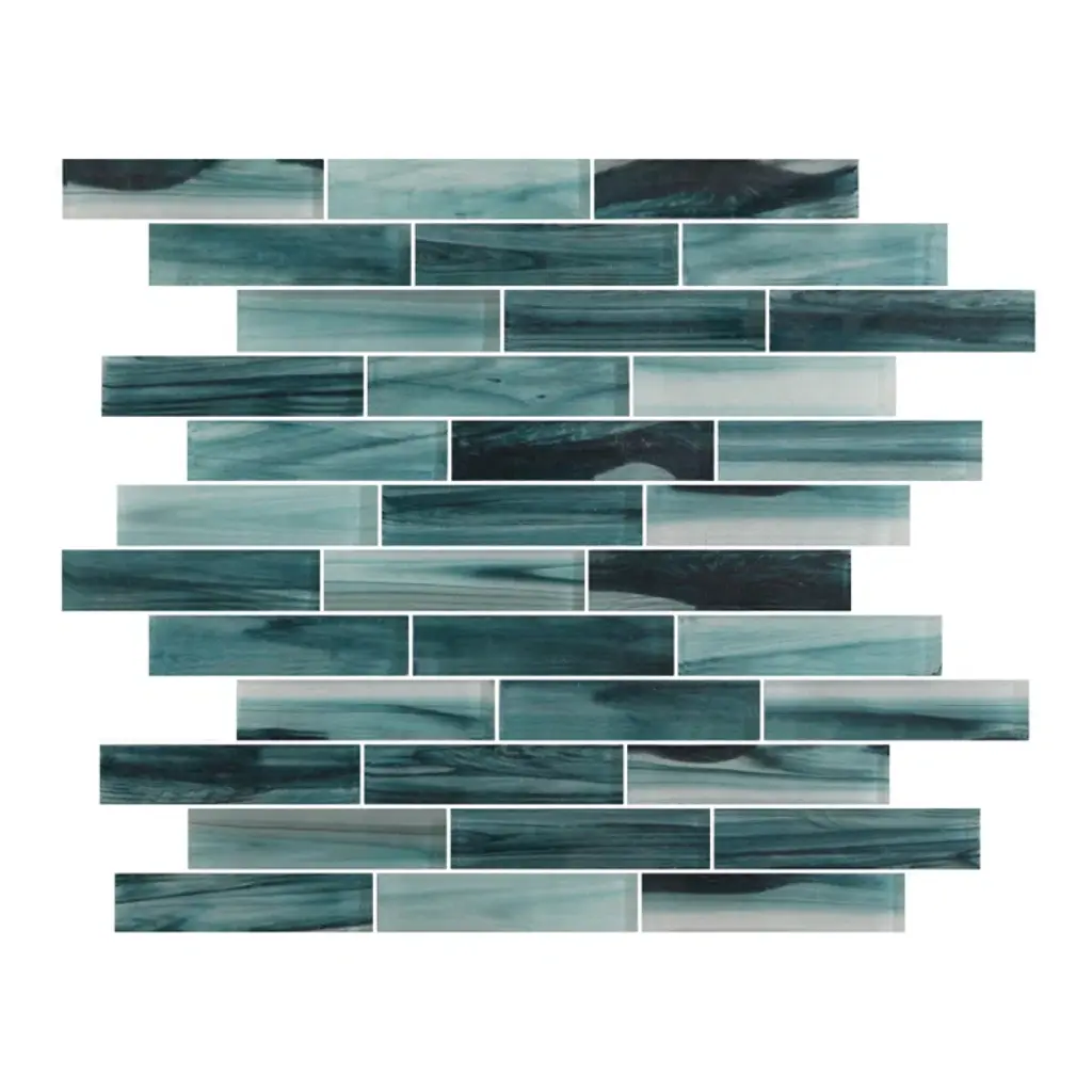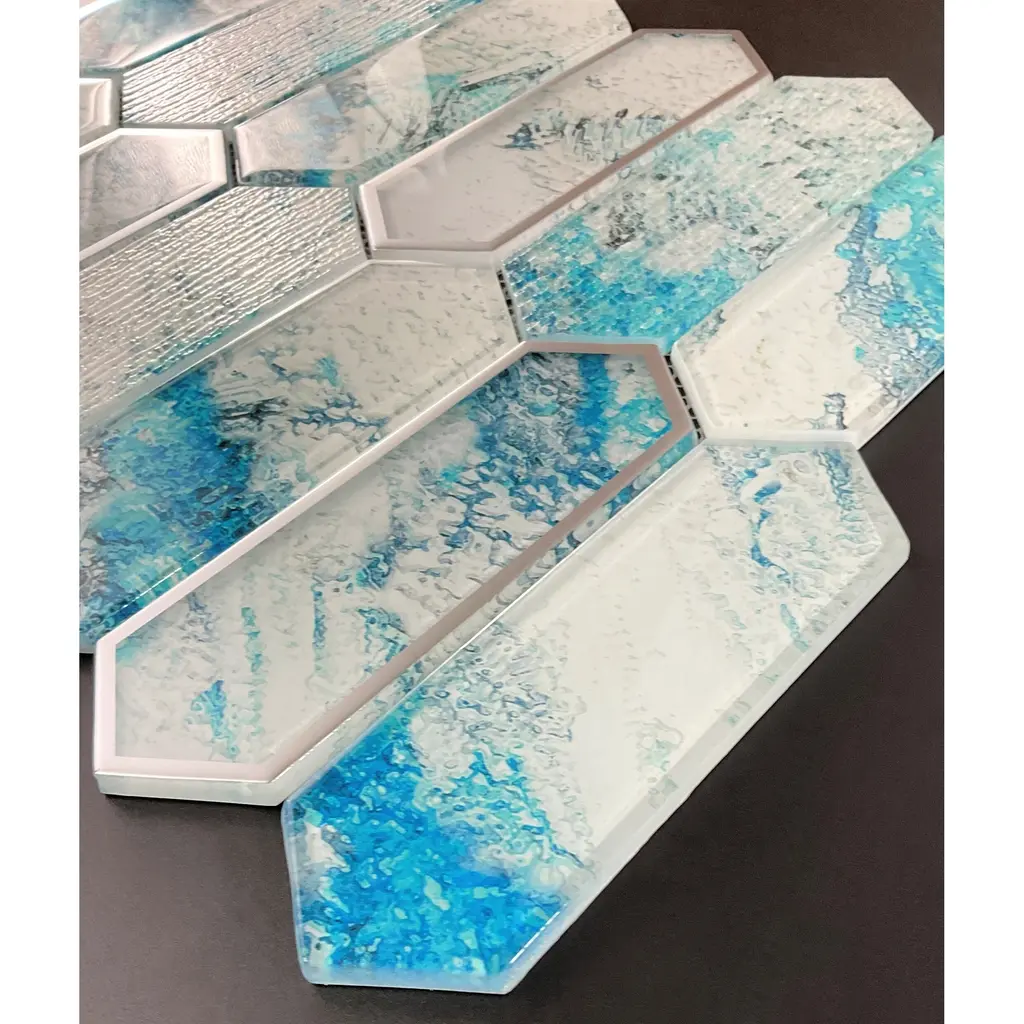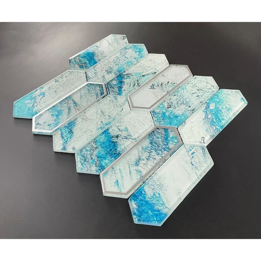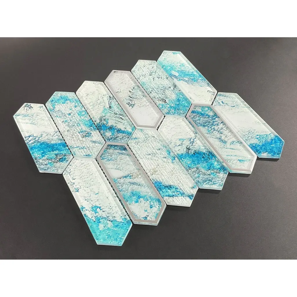 6 X 2 Long Hexagon Glass Wall Mosaic Tiles - Case (10 Sheets) - Aqua With Silver