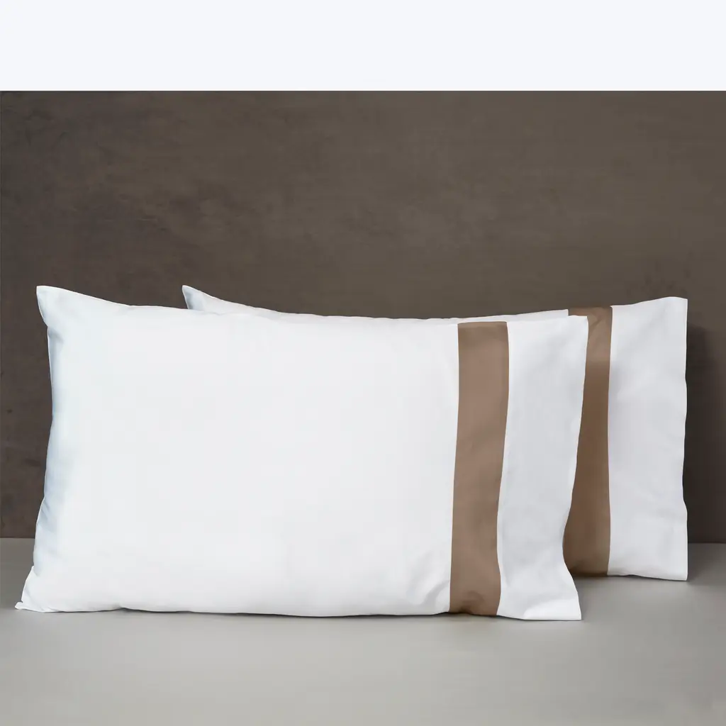 Discover the Aida Sheets & Pillowcases by Signoria Firenze. Crafted in Italy in 100% extra-long staple cotton sateen with a 300 t.c., this lustrous set couples comfort with elegant contemporary design. Sheets available in Twin, Queen, and King sizes. Pillowcases offered in Standard and King. Pair with the Aida Duvet & Sham, White/Brown. *All sold separately