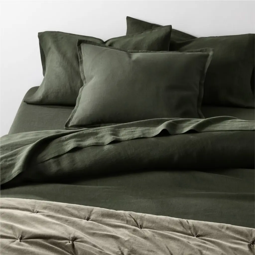 Our Aire Natural collection makes a laid-back bed dressed in cool-to-the-touch linen that sleeps comfortably year-round. The sustainably sourced fiber weaves a soft sheet set in a dark green-grey that serves as a sophisticated neutral. Pair the effortlessly chic sheets with our other linen bedding in the same deep hue, or mix and match to keep the look fresh.Bed pillows also available.
