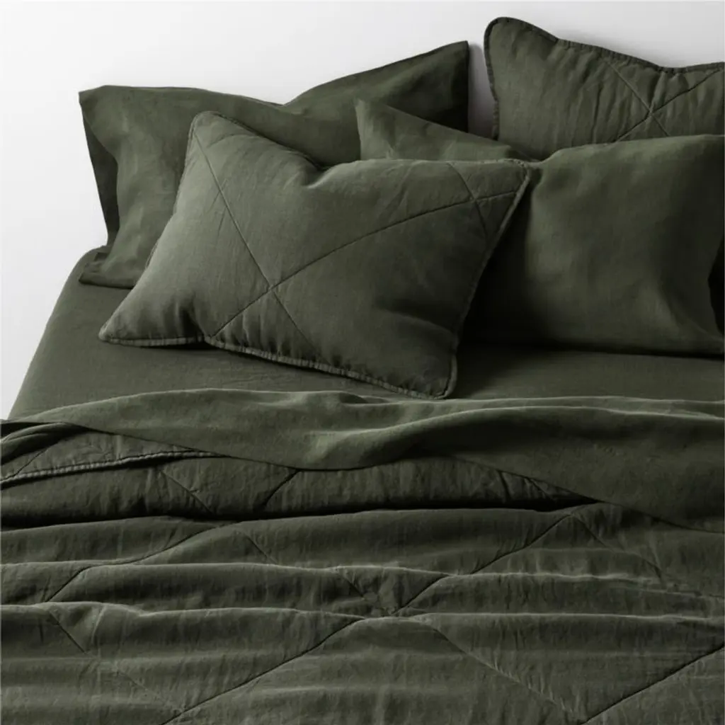 Aire Natural European Flax Tm-Certified Linen Ficus Green Queen Bed Sheet Set