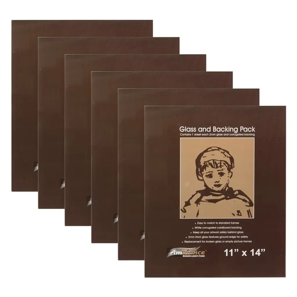 Ambiance Picture Frame Glass And Backing 11x14" - 6 Pack – 2Mm Thick Glass Sheets With White Corrugated Cardboard Backing – Replacement Glass For