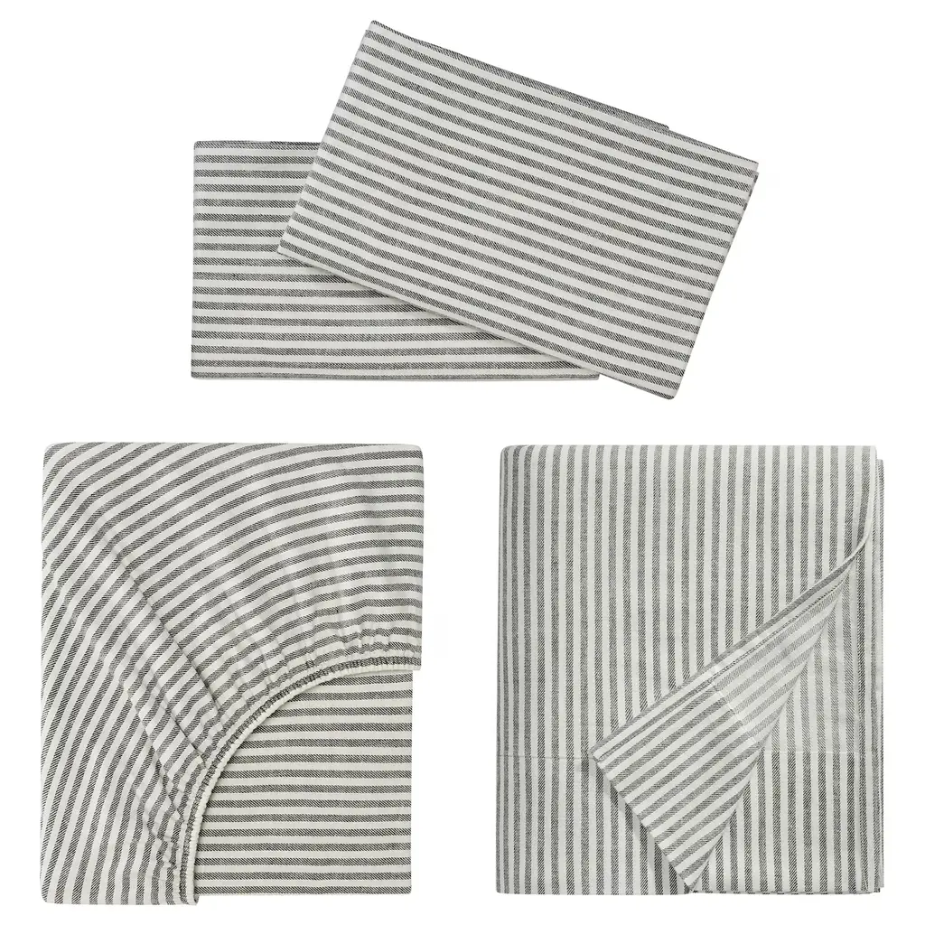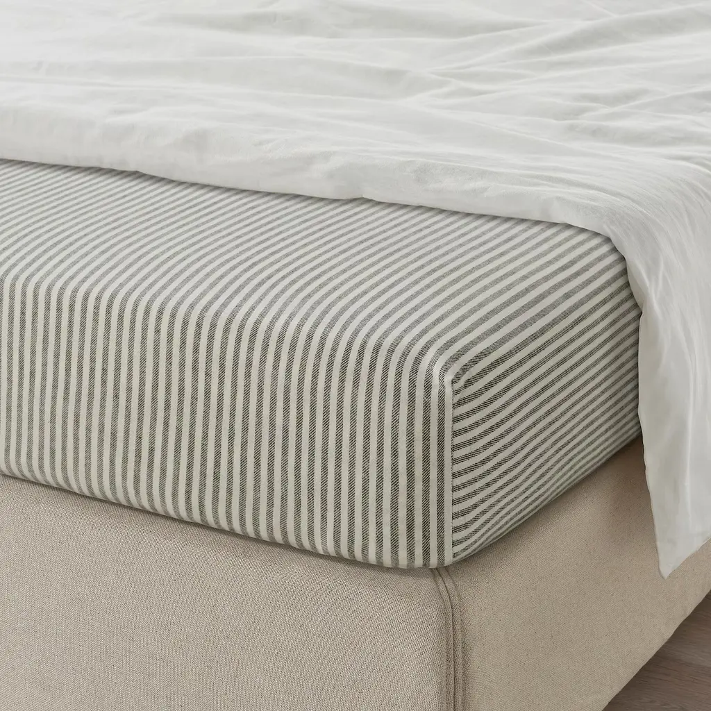 ÄNGSDVÄRGMAL Sheet set - green/stripe King. Cotton flannel feels soft against your skin, and keeps you warm during cooler nights. Made of 100% cotton - a natural and durable material that becomes softer with every wash. A set with a sheet, fitted sheet and pillowcases. 86 thread count.