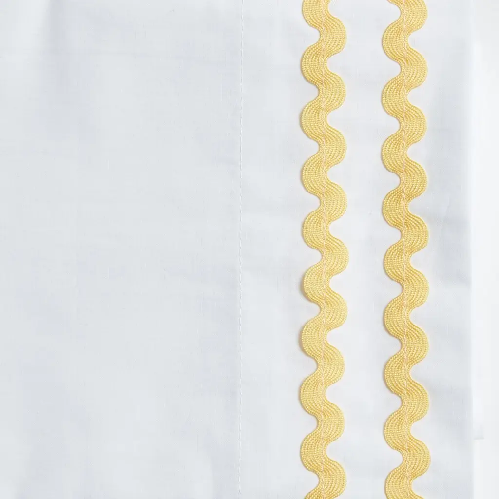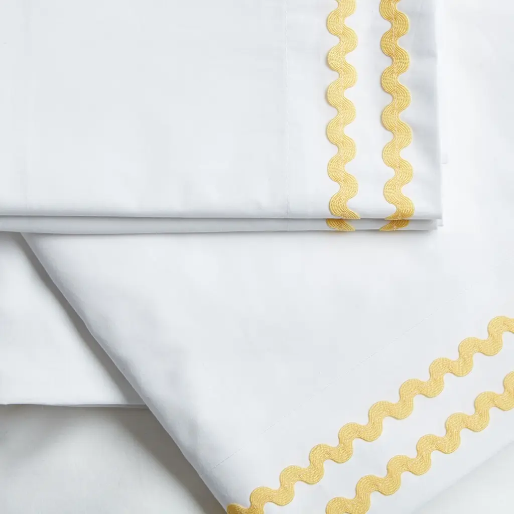 Designed in collaboration with Celerie Kemble exclusively for One Kings Lane: Crafted of white cotton with a double border of rickrack trim on the flat sheet and pillowcases, this tailored sheet set exudes a playful simplicity.