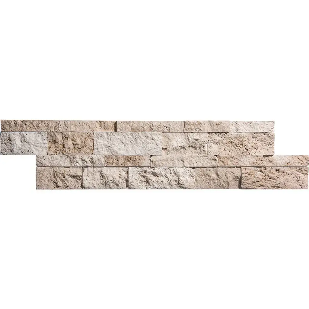 Elevate your space with the timeless elegance of our Argento Travertine 6" x 24" Split Face Ledger Corner. Crafted from genuine travertine, these ledger corners showcase a captivating blend of classic tones and a distinctive split face finish. The natural texture and sophisticated hues of Argento Travertine create a captivating corner ledger that adds depth and character to any room. Measuring 6" x 24", these ledger corners are versatile and visually striking, making them the perfect choice for accentuating corners, creating stunning feature walls, or framing your fireplace with a touch of timeless luxury. Their interlocking design ensures straightforward installation, allowing you to transform your space quickly and effortlessly.What's included?Product DetailsSample Details