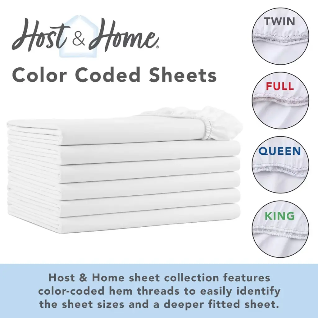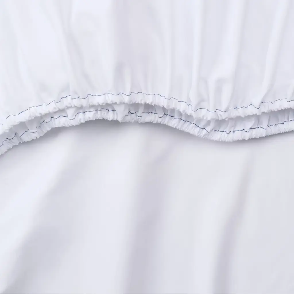 Monarch Linens and Arkwright Home present Lulworth hotel quality white fitted sheets, available in 180 thread count are constructed from a 55/45 blend of cotton and polyester. Cotton/poly blends easy-care fabrics that make laundering simple. No pressing is needed. Lulworth fitted sheets are available in twin, full, queen, and king sizes. Buying linens in bulk is an excellent choice for large families, vacation homes, boutique and full-service hotels, Airbnbs, and rental properties of all kinds. Buy a 6-pack or buy a case of 24 fitted sheets.