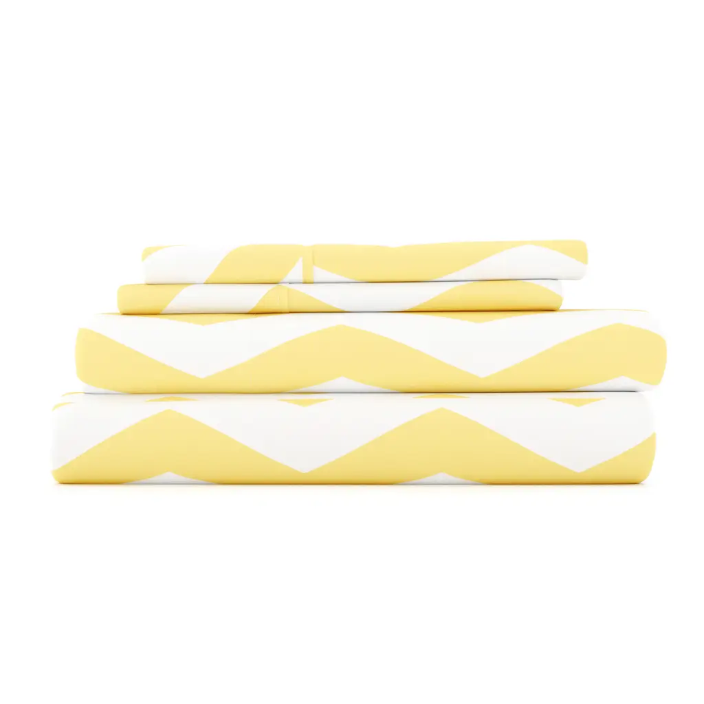 Our double-brushed patterned microfiber sheet set is super soft to the touch and wrinkle-resistant. We use premium yarns that are twice as durable as cotton, which means less risk of rips and wear. Naturally hypoallergenic, our sheets are ideal for sensitive skin and those with allergies. Available in a variety of unique designer prints and patterns, including florals, geometrics, and stripes, making it the perfect new addition to your room!