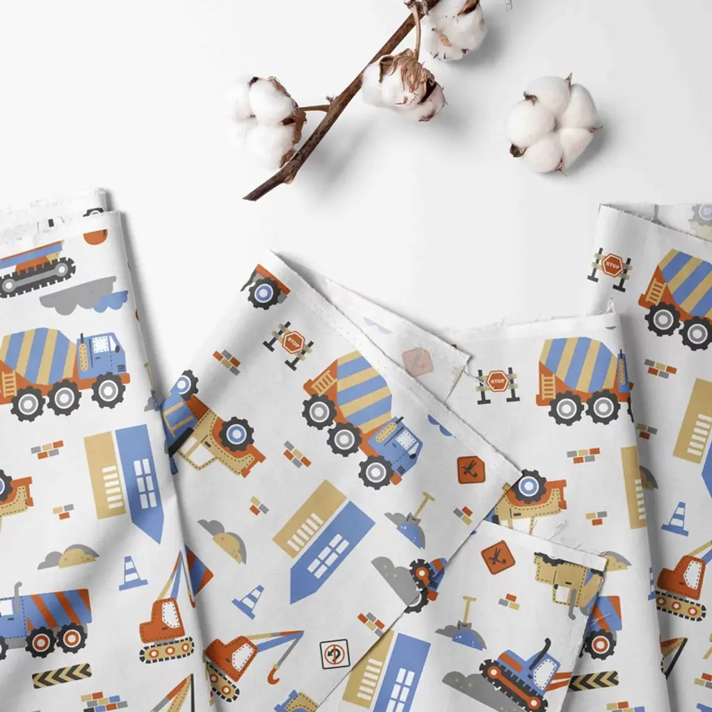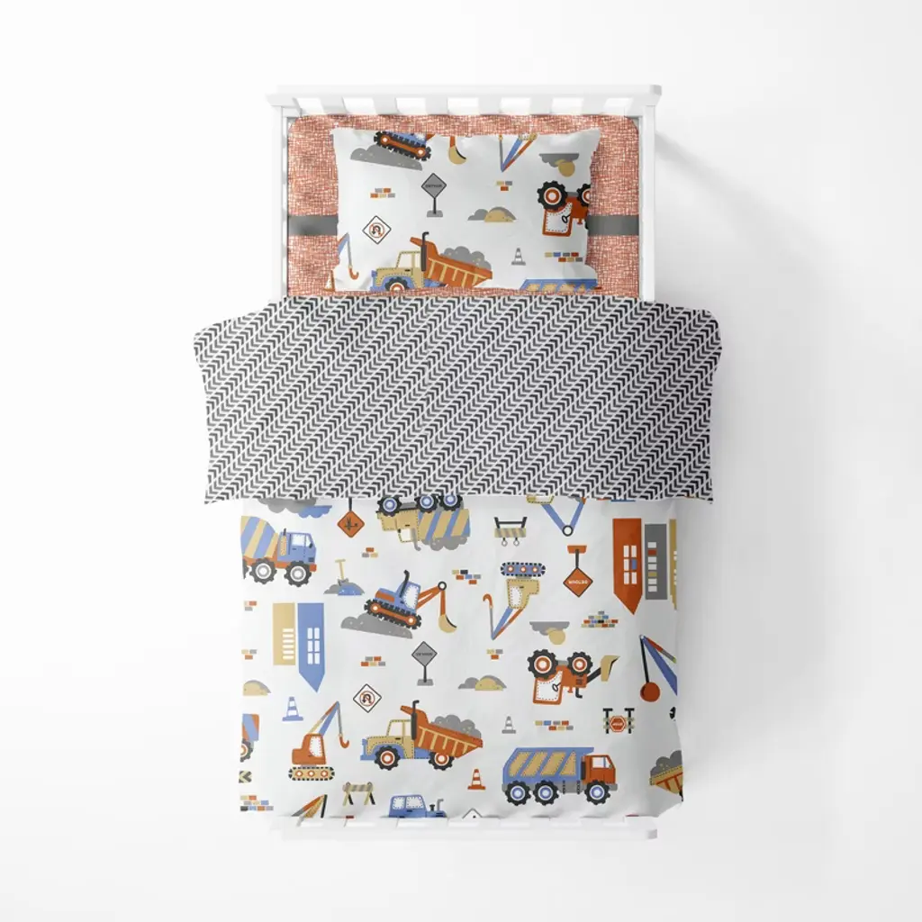Bacati - Construction Yellow Orange Blue Gray 3 Pc Toddler Bed Sheet Set