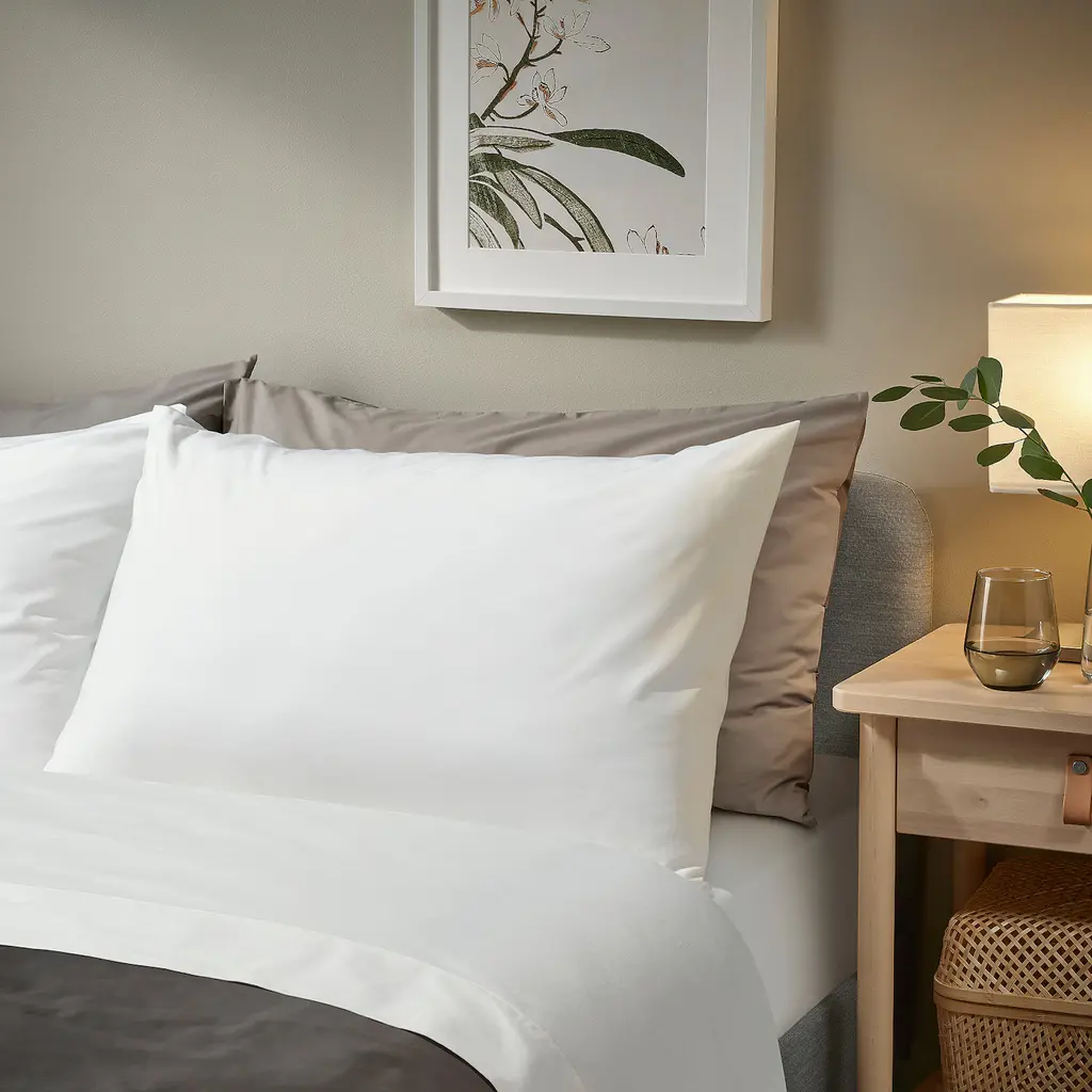 BALSAMPOPPEL Sheet set - white Queen. Comprises of 100% organic cotton certified by GOTS - the Global Organic Textile Standard. Cotton is a soft, natural material that breathes, absorbs moisture and feels comfortable against your skin. Just as easy to put on as to remove and machine wash.