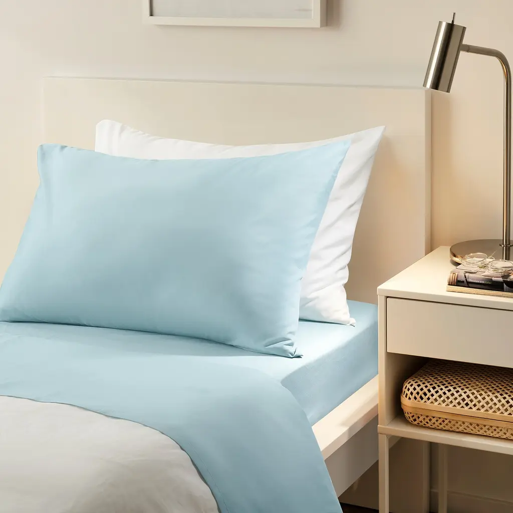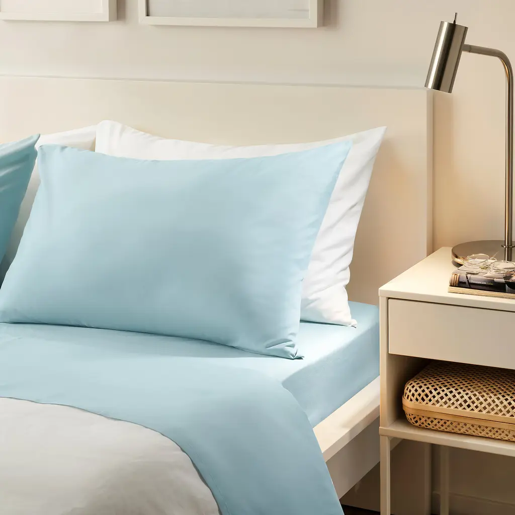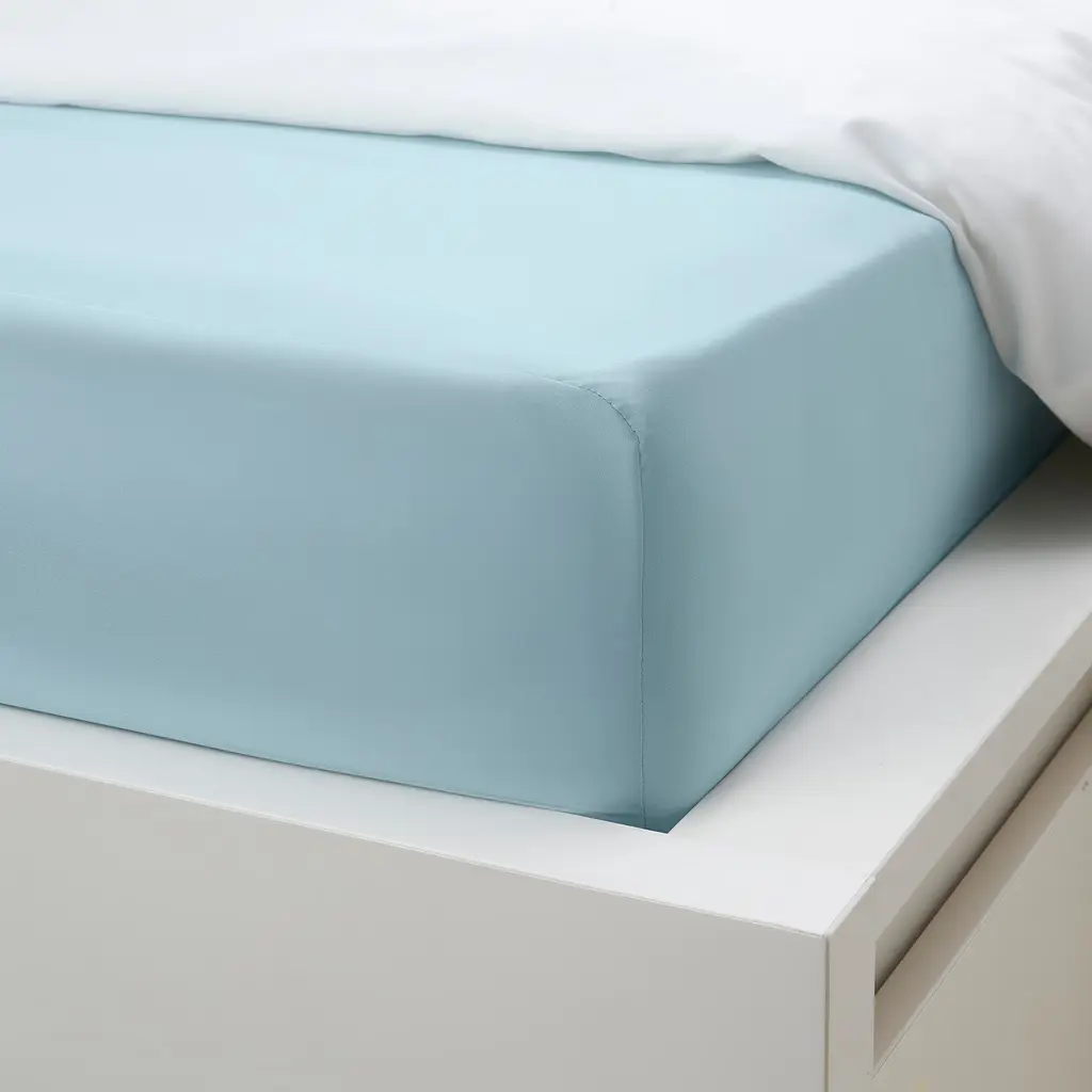 BANDPALPMAL Sheet set - light blue Full/Double. Super-soft sheet set with a brushed surface that gives you that extra-nice comfort so you enjoy a good sleep. The fabric is made of recycled polyester. Using waste as a resource takes us one step closer to a more sustainable future. 175 thread count.