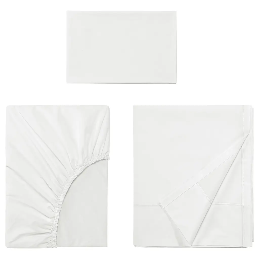 BANDPALPMAL Sheet set - white Twin. Super-soft sheet set with a brushed surface that gives you that extra-nice comfort so you enjoy a good sleep. The fabric is made of recycled polyester. Using waste as a resource takes us one step closer to a more sustainable future. 175 thread count.