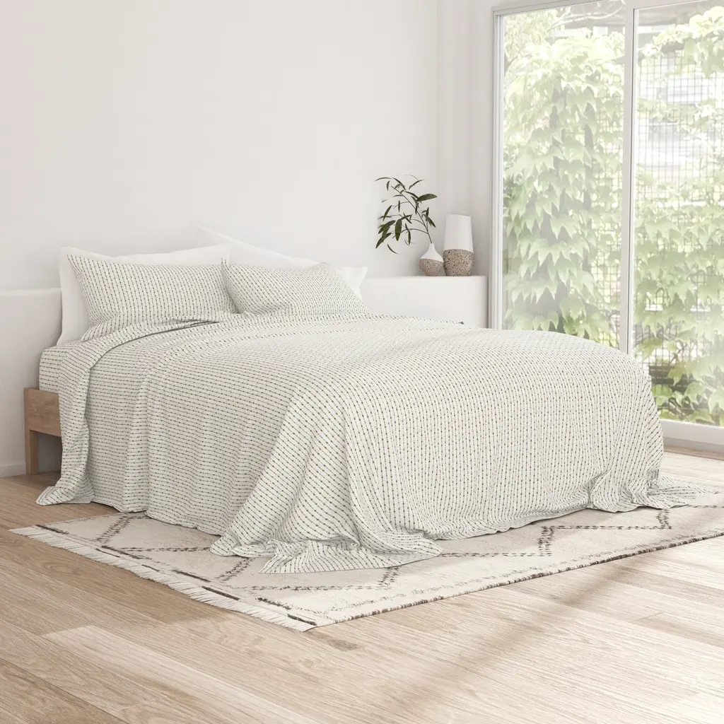 Our double-brushed patterned microfiber sheet set is super soft to the touch and wrinkle-resistant. We use premium yarns that are twice as durable as cotton, which means less risk of rips and wear. Naturally hypoallergenic, our sheets are ideal for sensitive skin and those with allergies. Available in a variety of unique designer prints and patterns, including florals, geometrics, and stripes, making it the perfect new addition to your room!