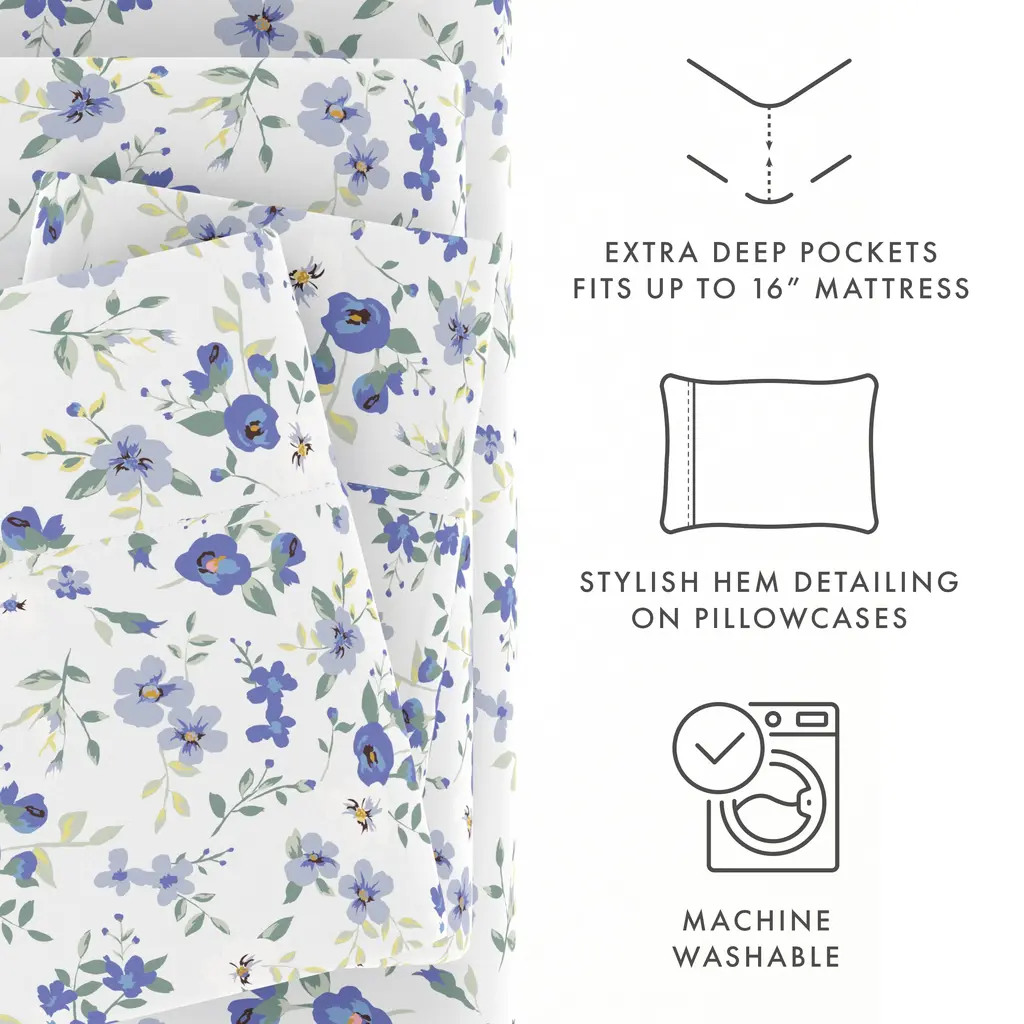 Our double-brushed patterned microfiber sheet set is super soft to the touch and wrinkle-resistant. We use premium yarns that are twice as durable as cotton, which means less risk of rips and wear. Naturally hypoallergenic, our sheets are ideal for sensitive skin and those with allergies. Available in a variety of unique designer prints and patterns, including florals, geometrics, and stripes, making it the perfect new addition to your room!