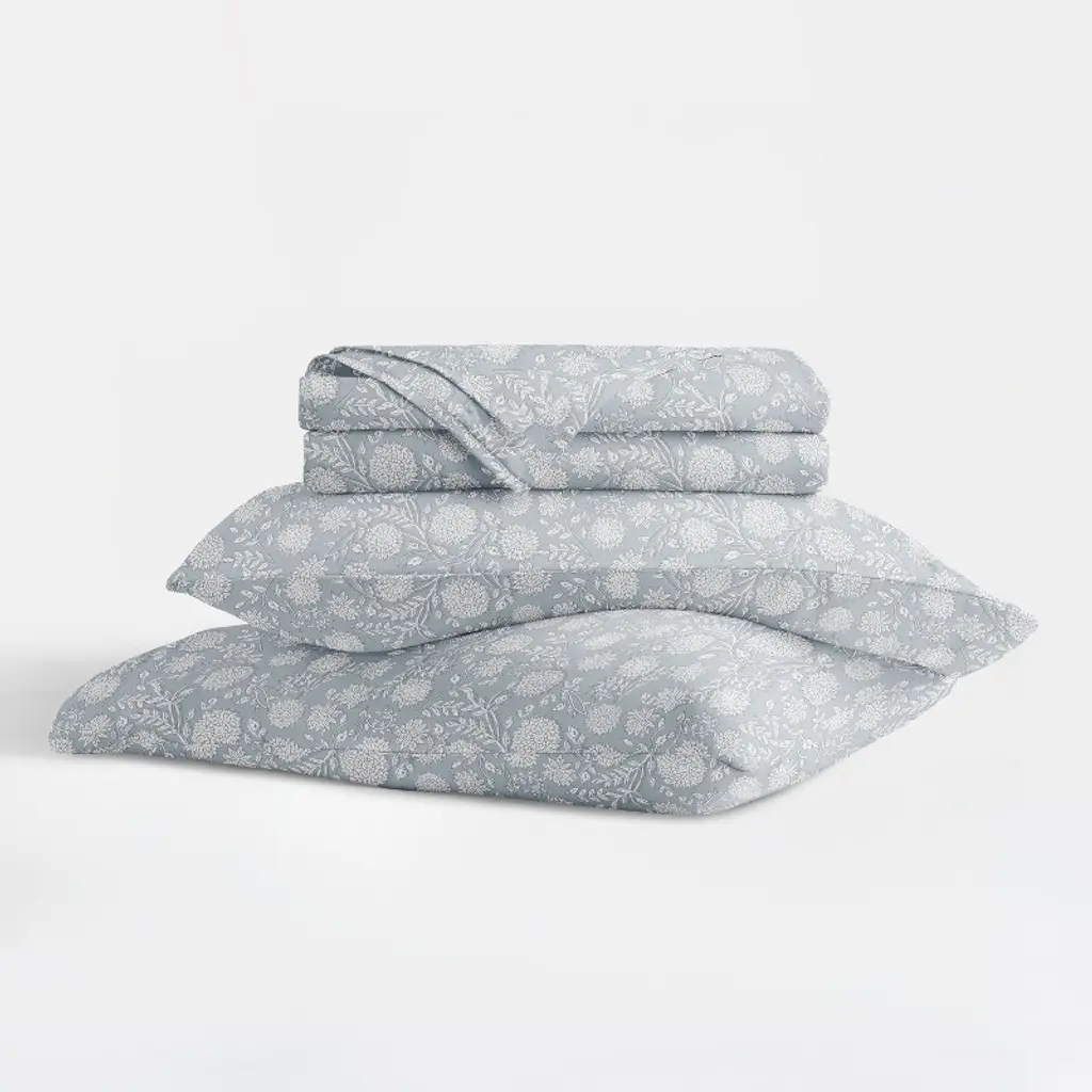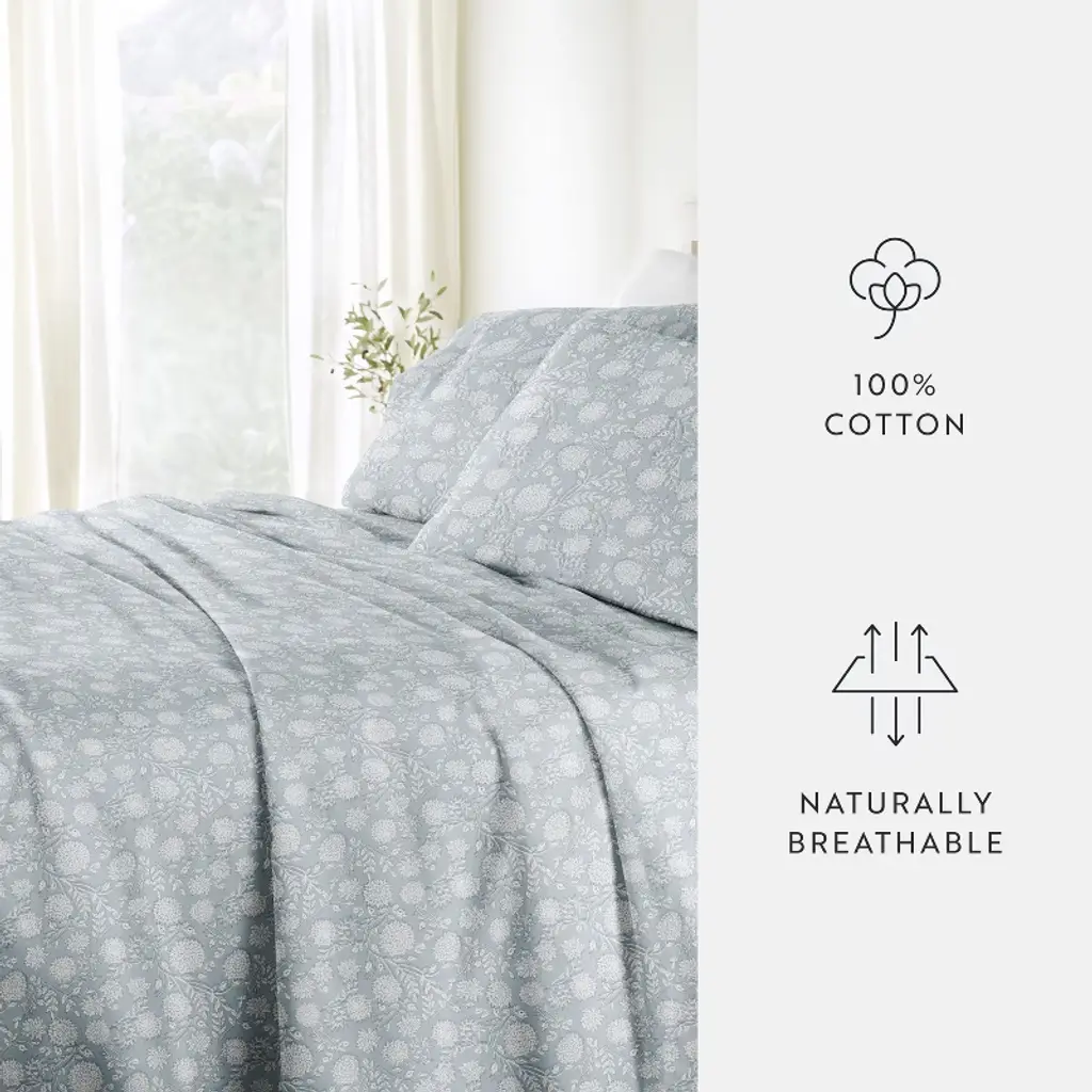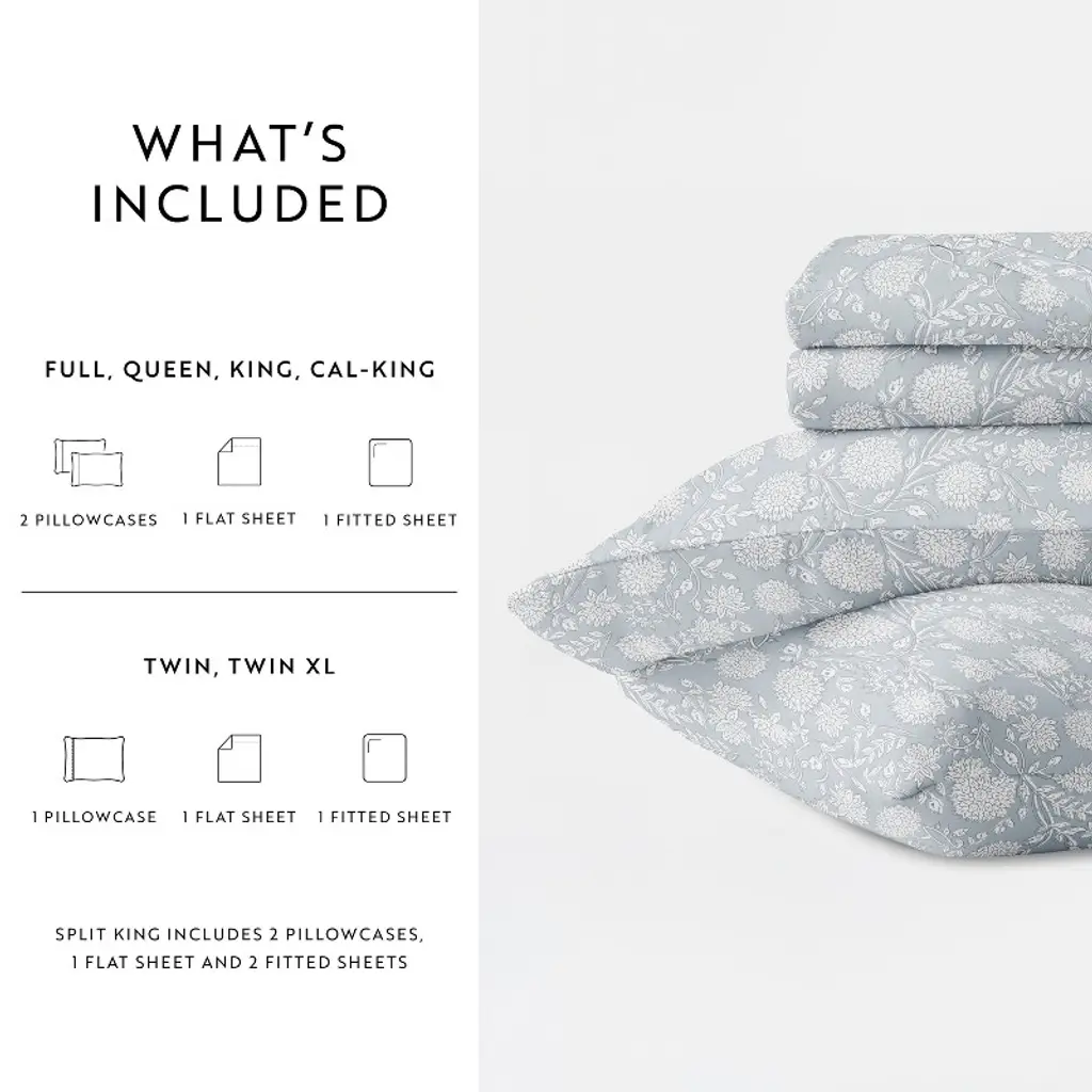 Bohemian Garden 100% Cotton Sateen Sheet Set – Oeko-tex Certified, Superior Softness & Style - Becky Cameron, Blue, California King