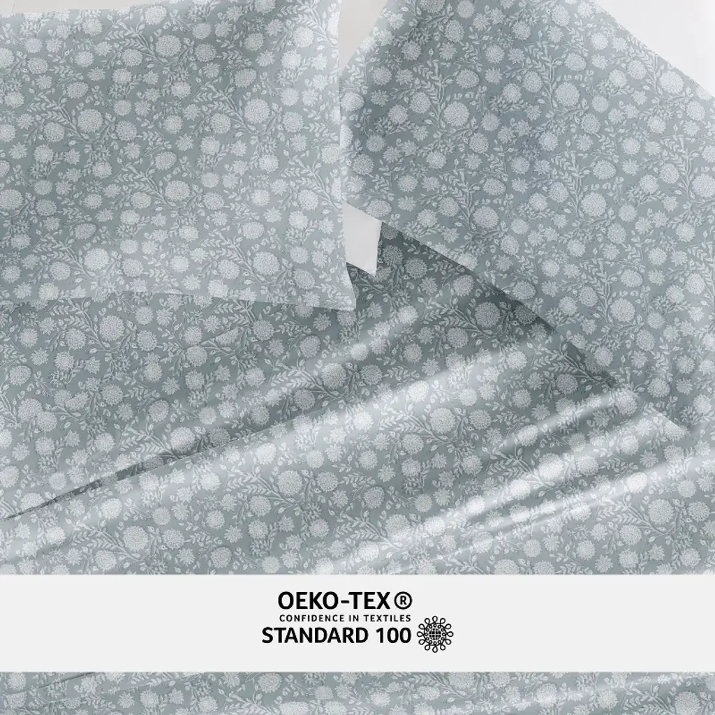 Bohemian Garden 100% Cotton Sateen Sheet Set – Oeko-tex Certified, Superior Softness & Style - Becky Cameron, Blue, King