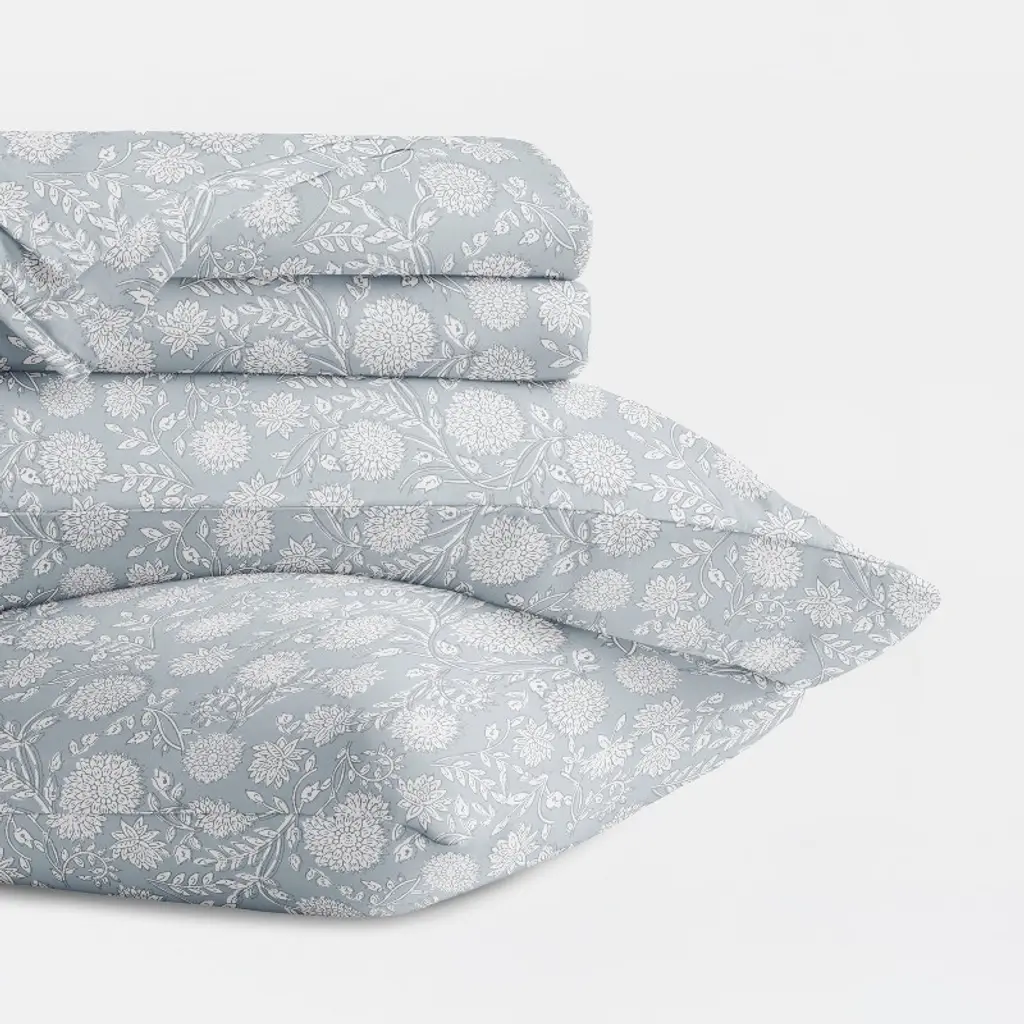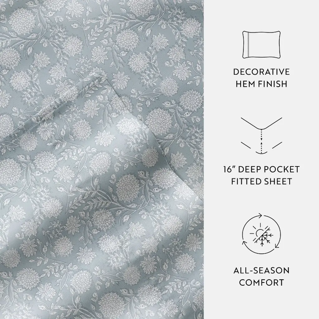 Bohemian Garden 100% Cotton Sateen Sheet Set – Oeko-tex Certified, Superior Softness & Style - Becky Cameron, Blue, Twin