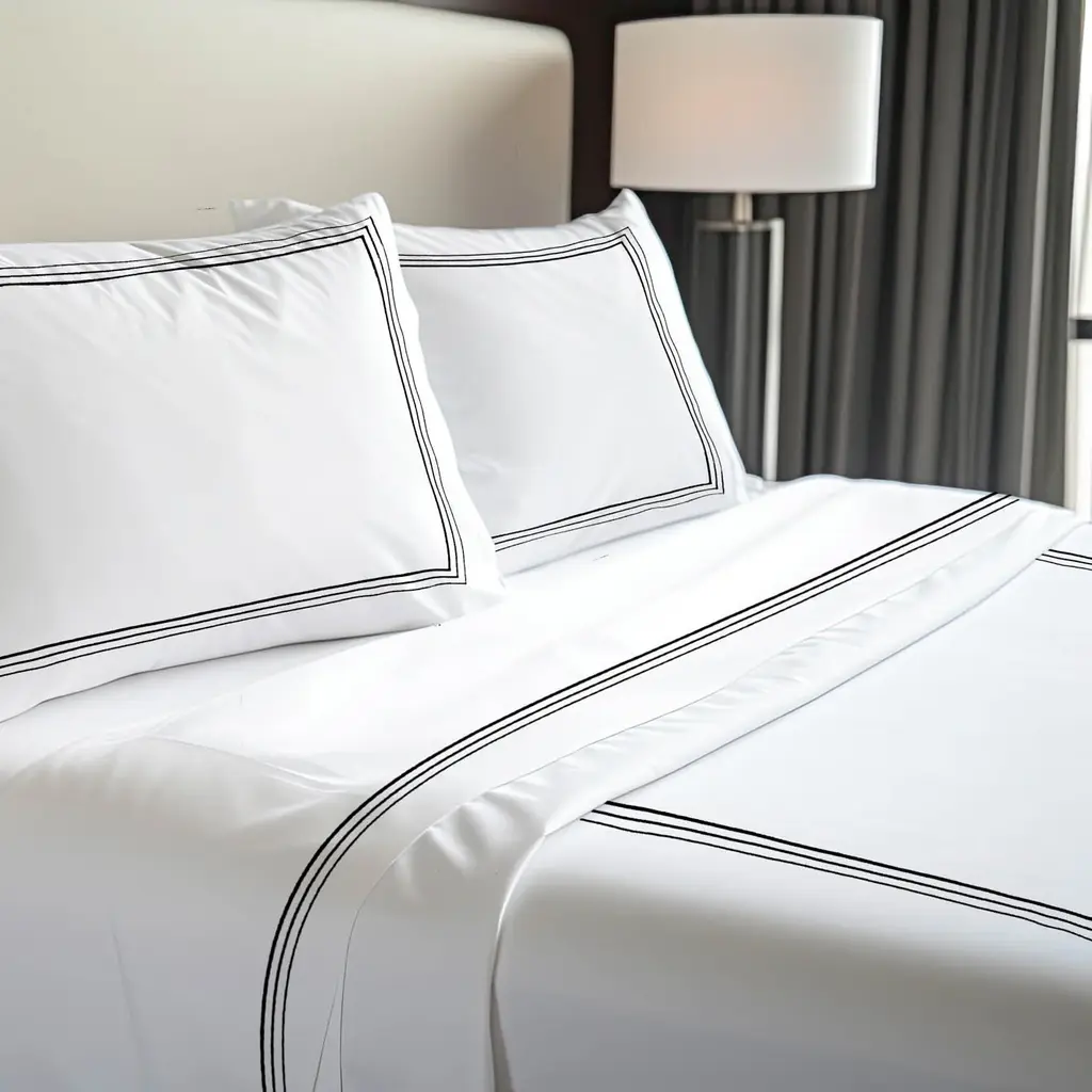 The Bold Sheet Set features soft long-staple cotton sateen with a beautiful contrasting border that effortlessly complements every sophisticated interior.