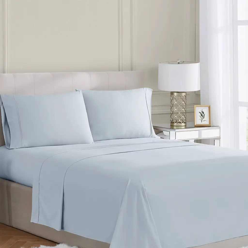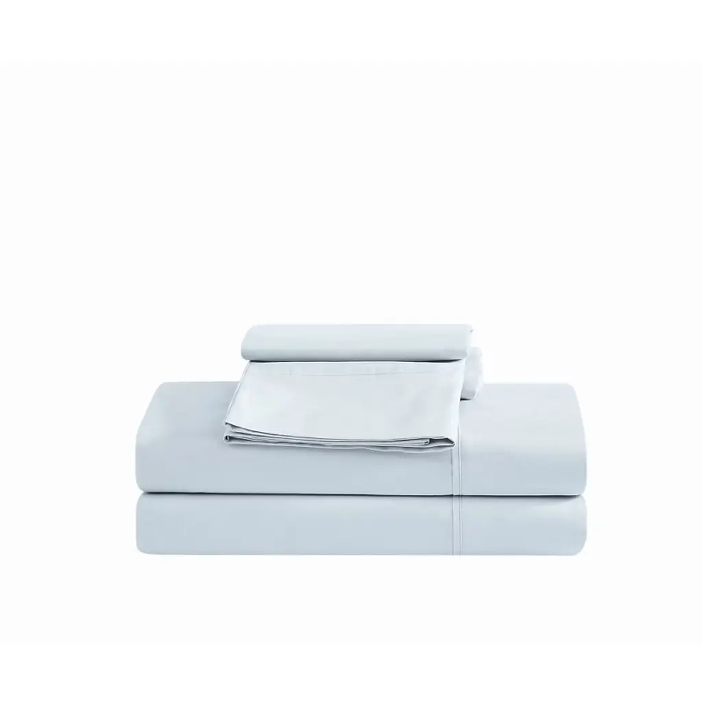 Borghese Roma 4Pc King 400 Thread Count Percale Cotton Sheet Set Light Blue