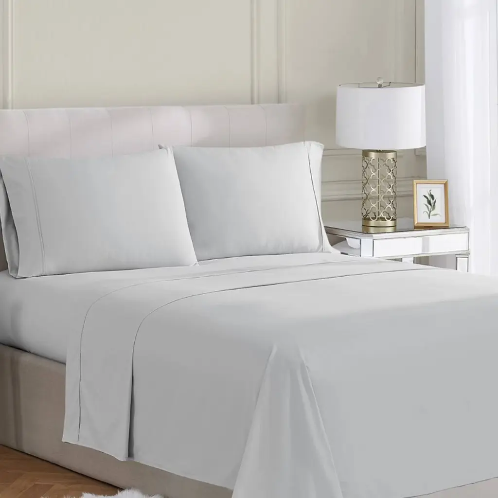 Borghese Roma 4Pc Queen 400 Thread Count Percale Cotton Sheet Set Gray