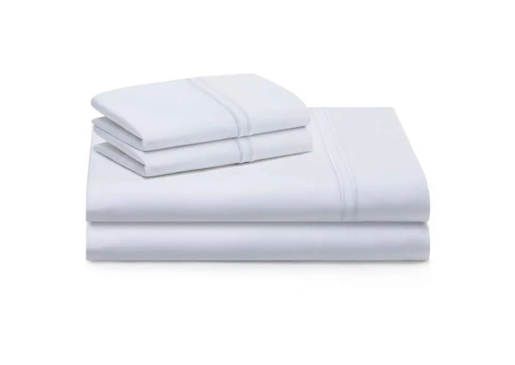 For those that want a little color in their lives, Boutique features a touch of color on the satin stitch detail of both the flat sheet and pillowcases.