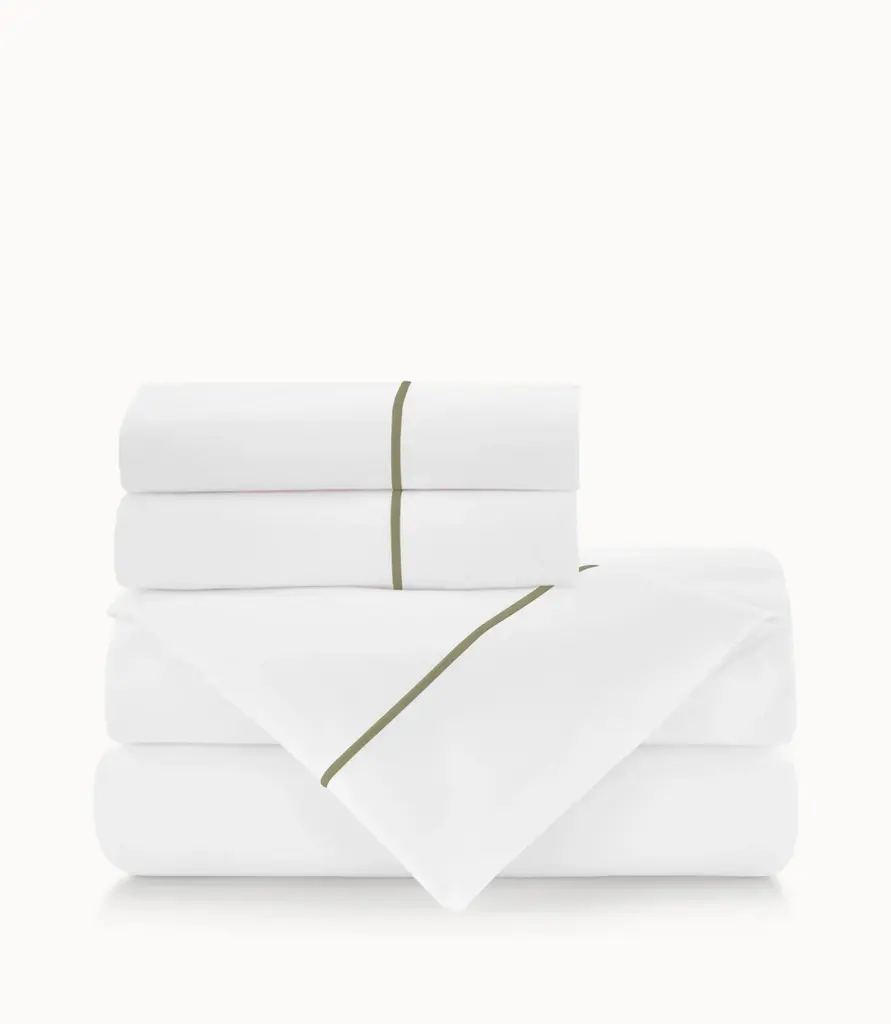 For those that want a little color in their lives, Boutique features a touch of color on the satin stitch detail of both the flat sheet and pillowcases.