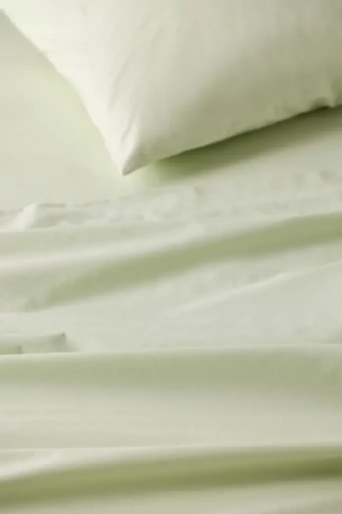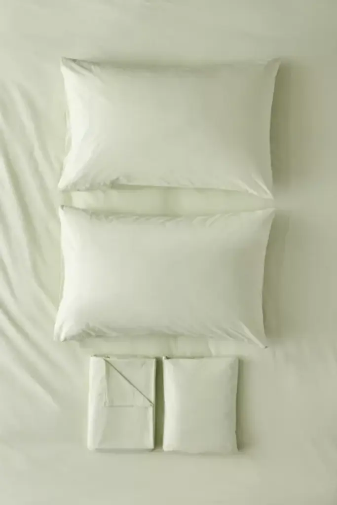 Slip into the softest cotton sheets every night you go to rest your head with this solid-colored sheet set that’s equipped with your bedding essentials. With a cool and crisp feel, this sheet set features a breathable weave that lends a luxurious touch to your bed. Available in sizes Twin XL, Full, Queen and King, each set includes a flat sheet, fitted sheet and pillowcases. Available exclusively at Urban Outfitters. **Features** \- Essential sheet set from our Breezy Cotton Percale bedding collection \- Woven from long staple yarns with AZO-free dyes \- Breathable, crisp cotton weave is perfect for warm sleepers \- Available in sizes Twin XL, Full, Queen and King, each set includes a flat sheet, fitted sheet and pillowcases \- Choose from a range of heathered colors to mix and match with your favorite UO Home bedding \- An eco-friendly upgrade, this item is OEKO-TEX® Standard 100 certified free of harsh chemicals \- UO exclusive **Content + Care** \- Twin XL sheet set includes: 1 pillowcase, 1 flat sheet, 1 fitted sheet \- Full, Queen and King sheet sets include: 2 pillowcases, 1 flat sheet, 1 fitted sheet \- 100% Cotton \- OEKO-TEX® Standard 100 Certified \- Meets OEKO-TEX® Standard 100 guidelines which independently test each component for harmful substances for textiles you can trust \- Machine wash \- Imported **Size** Twin XL \- Pillowcase dimensions: 20"l x 30"w \- Flat sheet dimensions: 66"l x 101"w \- Fitted sheet dimensions: 39"l x 80"w x 15"h Full \- Pillowcase dimensions: 20"l x 30"w \- Flat sheet dimensions: 81"l x 96"w \- Fitted sheet dimensions: 54"l x 75"w x 15"h Queen \- Pillowcase dimensions: 20"l x 30"w \- Flat sheet dimensions: 90"l x 102"w \- Fitted sheet dimensions: 60"l x 80"w x 15"h King \- Pillowcase dimensions: 20"l x 36"w \- Flat sheet dimensions: 108"l x 102"w \- Fitted sheet dimensions: 78"l x 80"w x 15"h