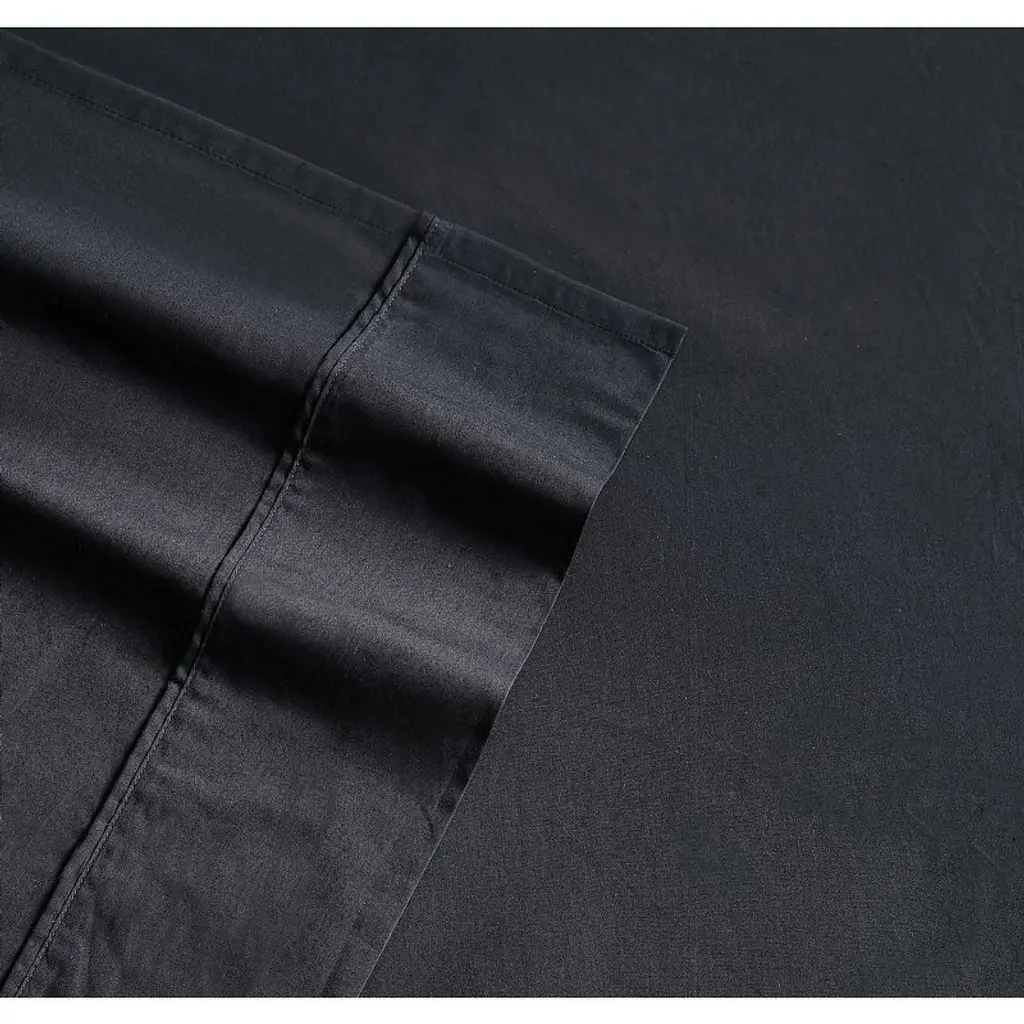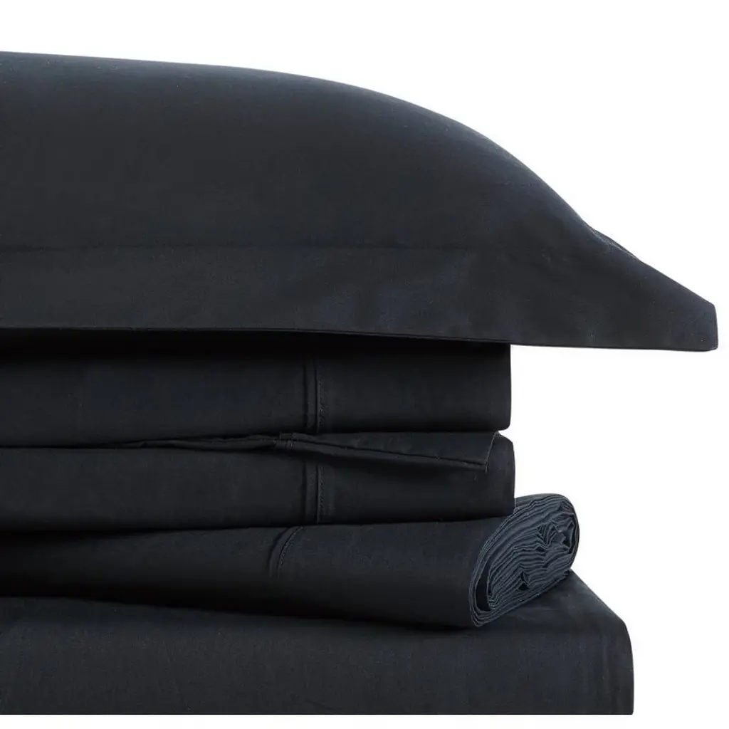 Brooklyn Loom Full Solid Cotton Percale Sheet Set Black