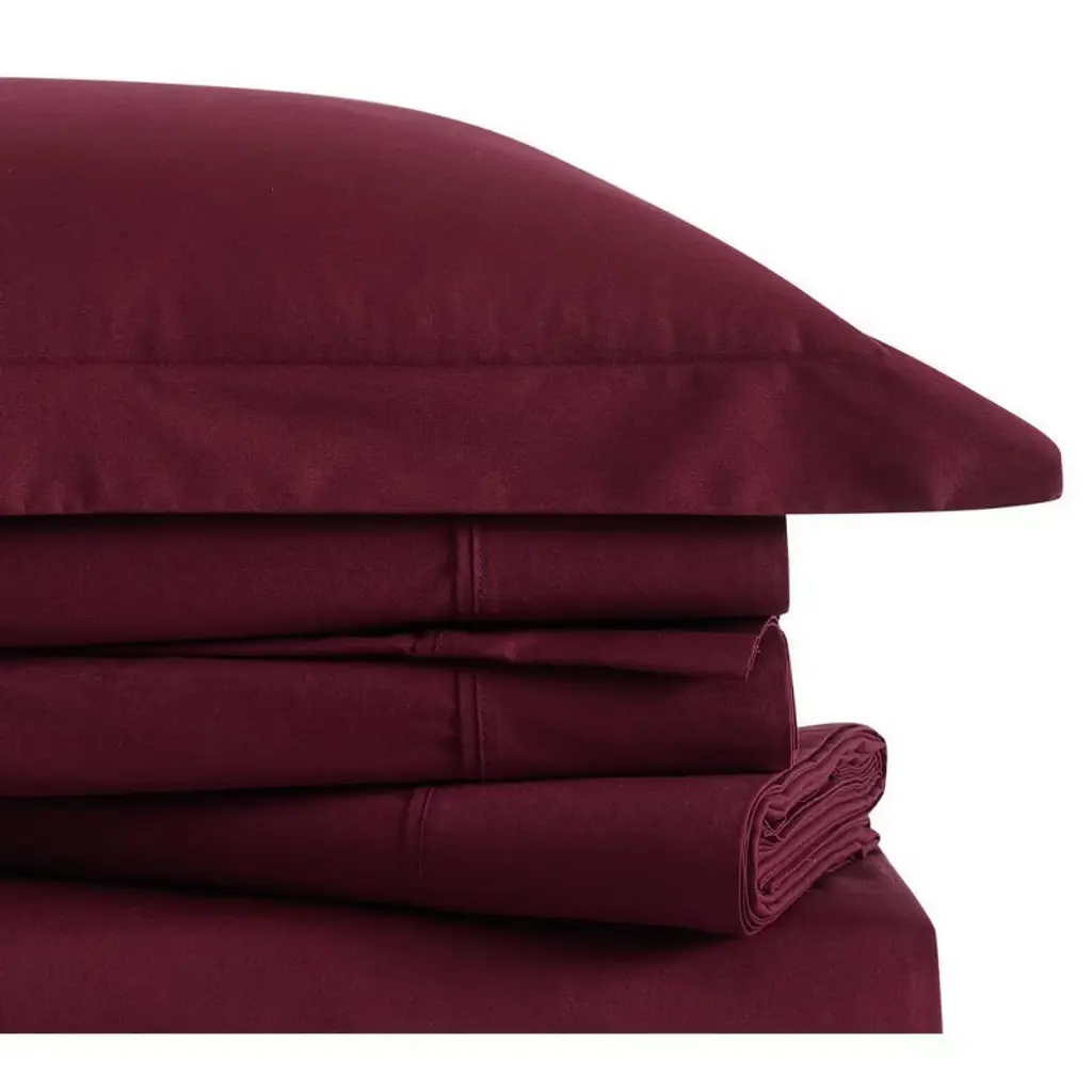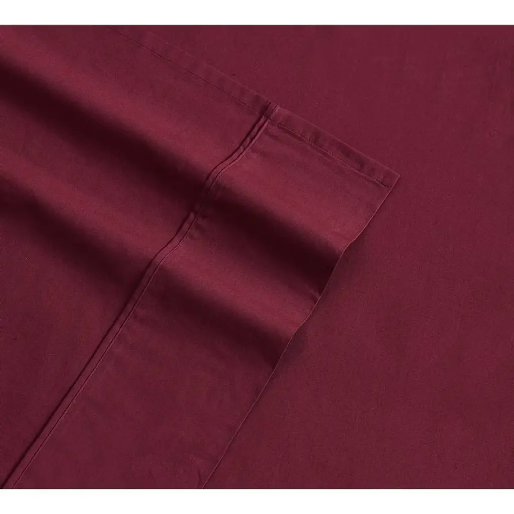 Brooklyn Loom Full Solid Cotton Percale Sheet Set Burgundy