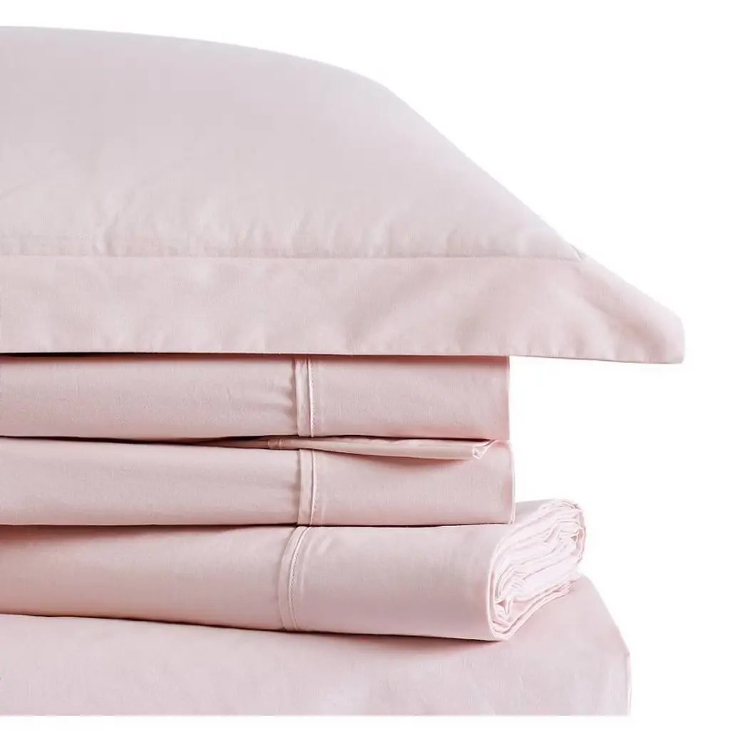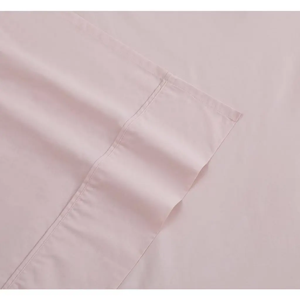 Brooklyn Loom Twin Solid Cotton Percale Sheet Set Blush