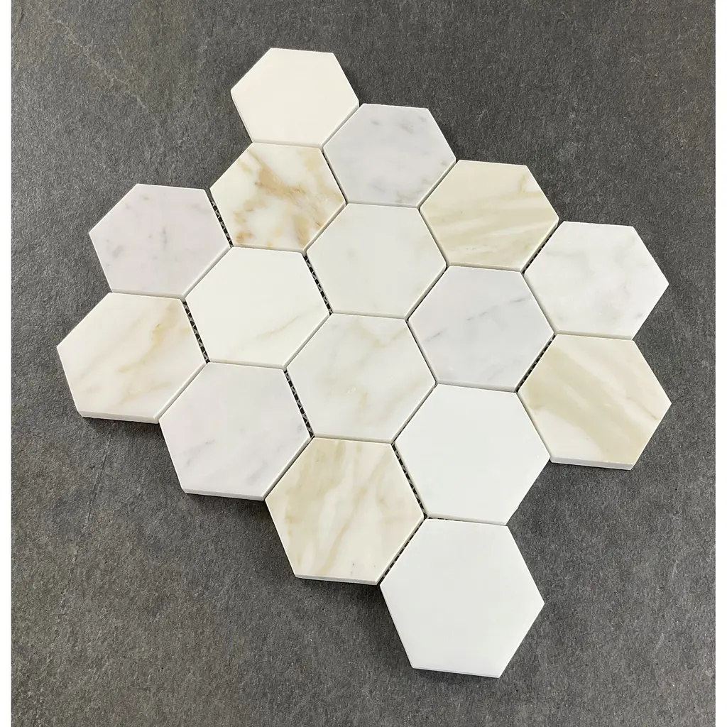 Calacatta Gold 3" Hexagon Marble Wall And Floor Mosaic - Case (5 Sheets) - Case (5 Sheets) - Calacatta Gold