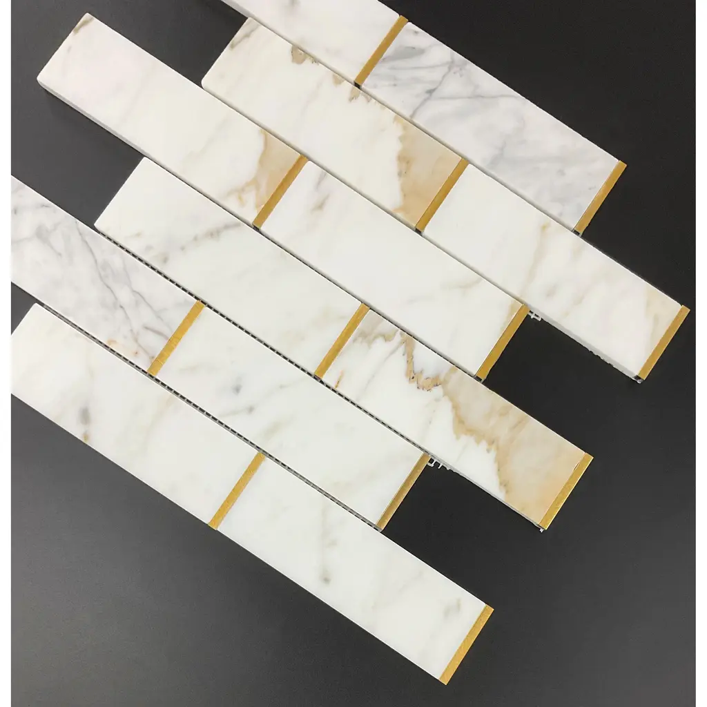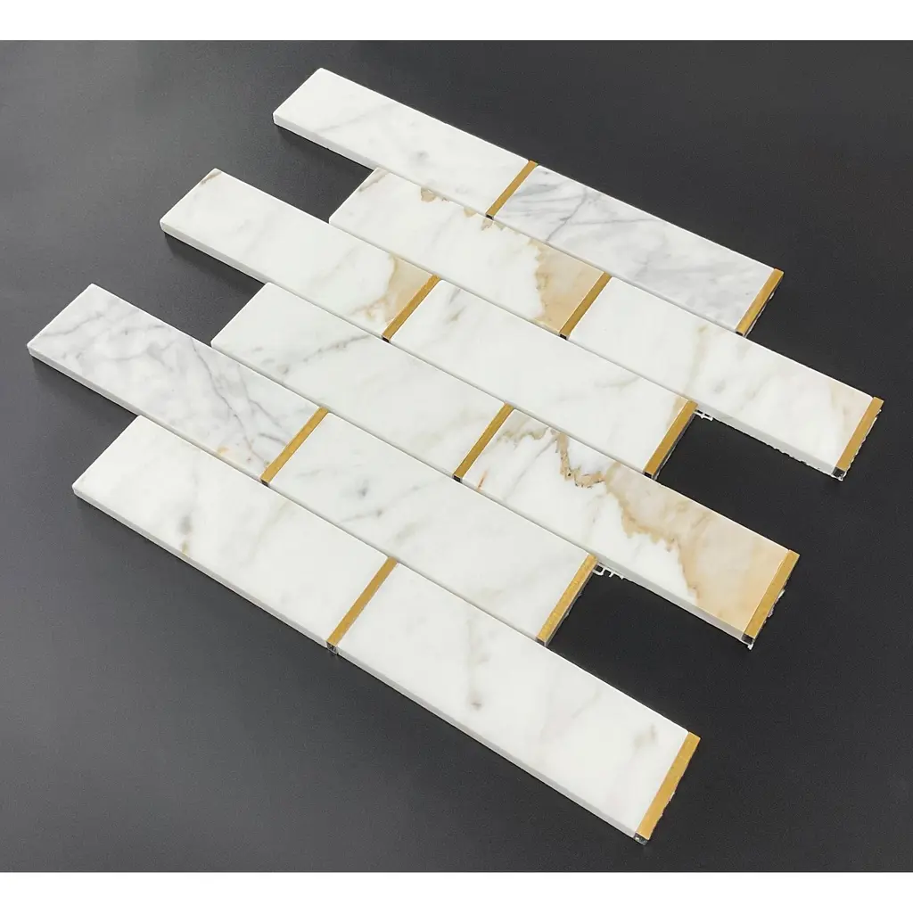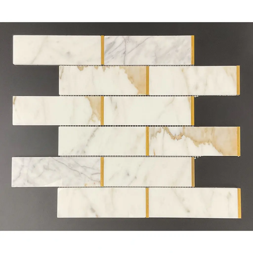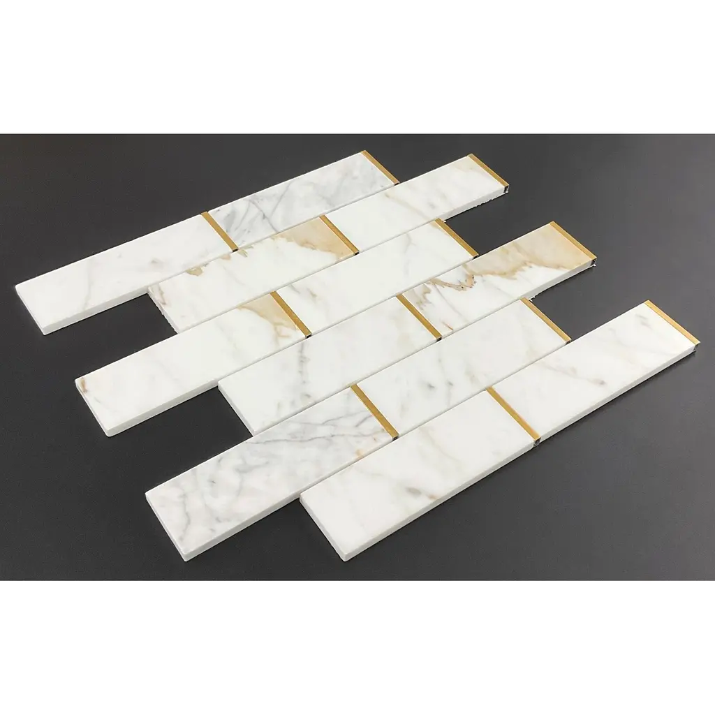 Calacatta Gold And Gold Metal Brick Marble Wall And Floor Mosaic - 1 Case (10 Sheets) - 1 Case (10 Sheets) - Calactta Gold With Gold Metal