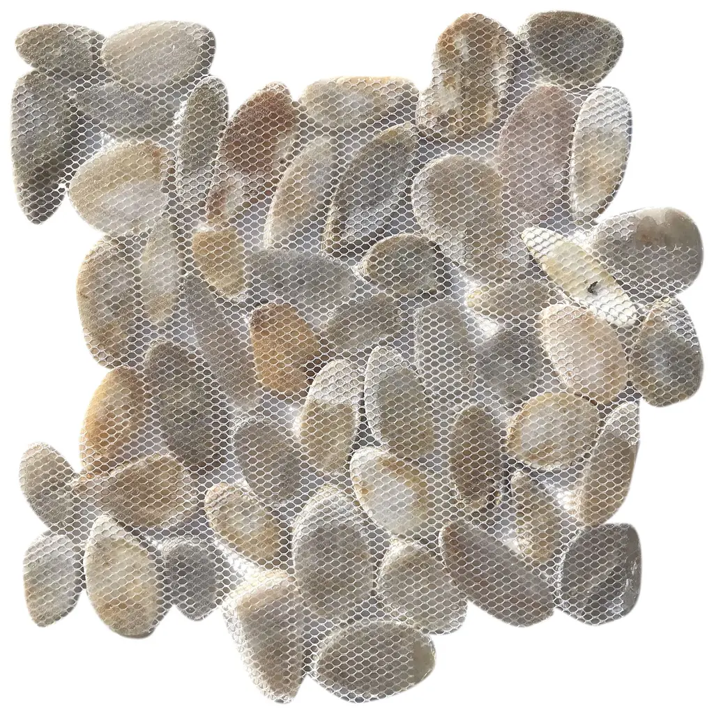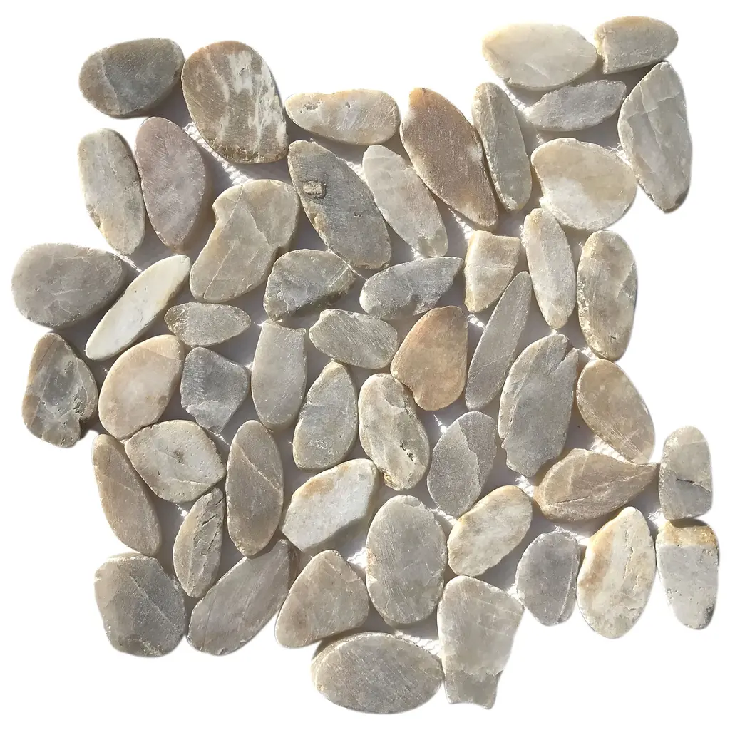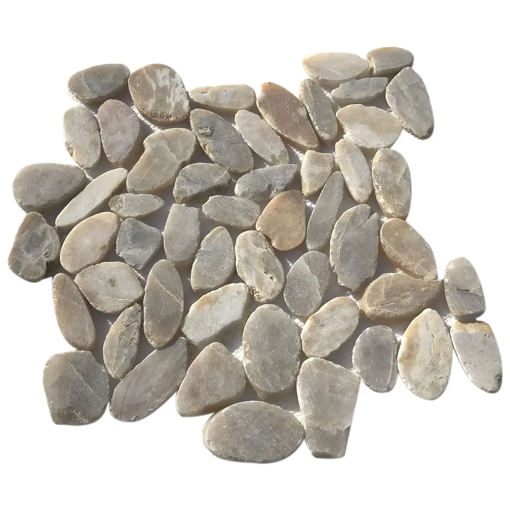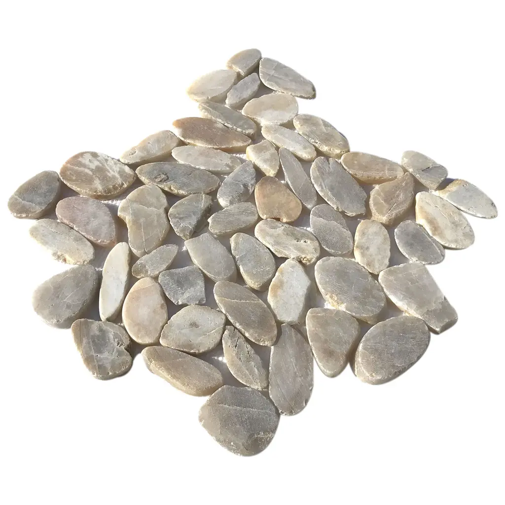Canary Natural Stone Sliced Pebble Mosaic Tile - 5 Sheets (5.00 Sf) - Tan