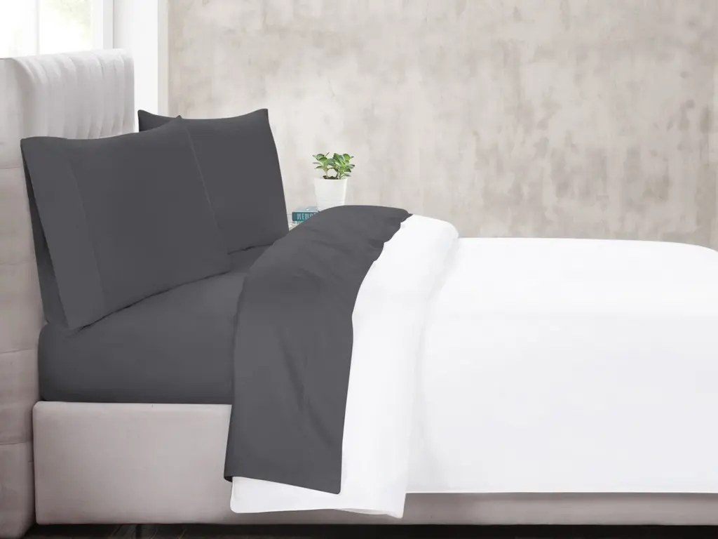 Cannon 5Pc King Solid Percale Split Sheet Set Black