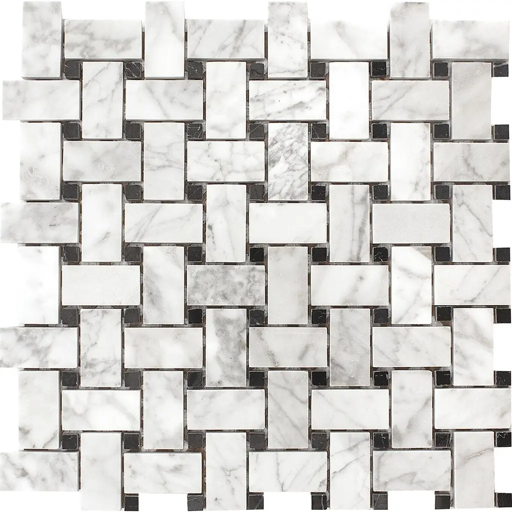 Add a touch of elegance and luxury to your home renovation project with Carrara Marble Polished Basketweave Mosaic Tiles. Made from genuine Carrara marble, these tiles showcase the timeless beauty of crisp white or blue-gray hues. Their sophisticated design makes them a perfect choice for bathrooms, kitchens, and backsplashes. With their durability and easy maintenance, Carrara Marble Polished Basketweave Mosaic Tiles can withstand high traffic and heavy use, ensuring longevity and practicality for your space.Features: