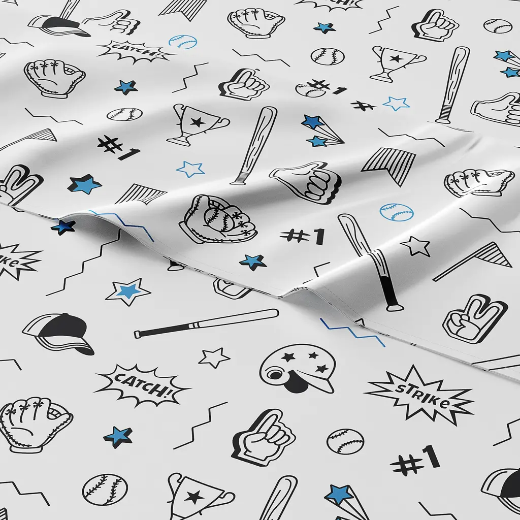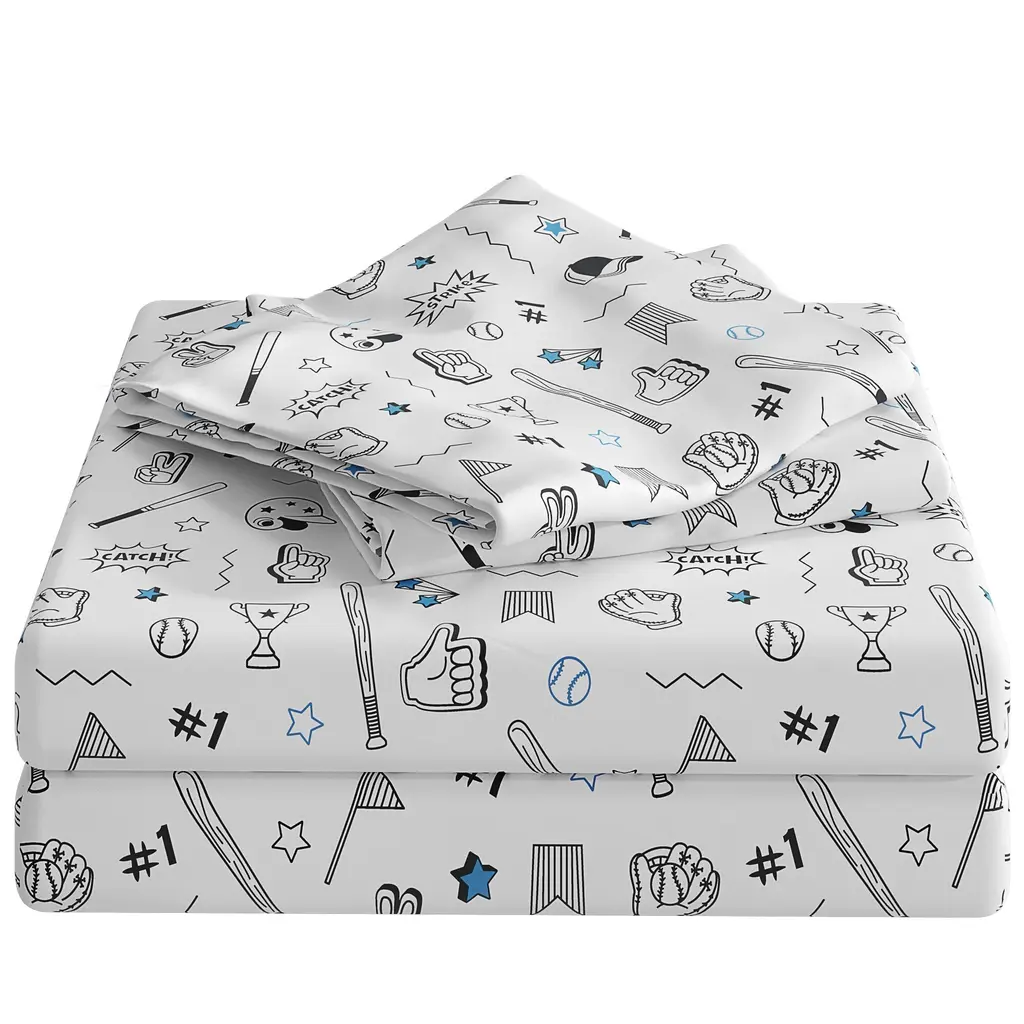 Cgk Linens Kids 4 Piece Printed Microfiber Easy Fit Cute Bed Sheet Set - Baseball Blue - Full