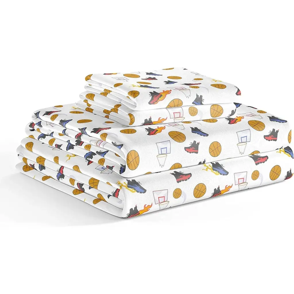 Our kids’ sheets fit your child’s bedroom style and offer long-lasting quality. Made with a super soft and breathable microfiber material. Perfect for teens, toddlers, or children excited about their “big kid bed” keeping them cozy and ready for bedtime. These printed sheet sets are available in a variety of stylish color and pattern options- which bring a fun and playful vibe to your bedroom decor. The sheet set includes one flat sheet, one fitted sheet, and two pillowcases (one for twin sizes). Sets contain a fully elasticized fitted sheet to prevent slipping from your mattress and ensure a perfect fit. Features