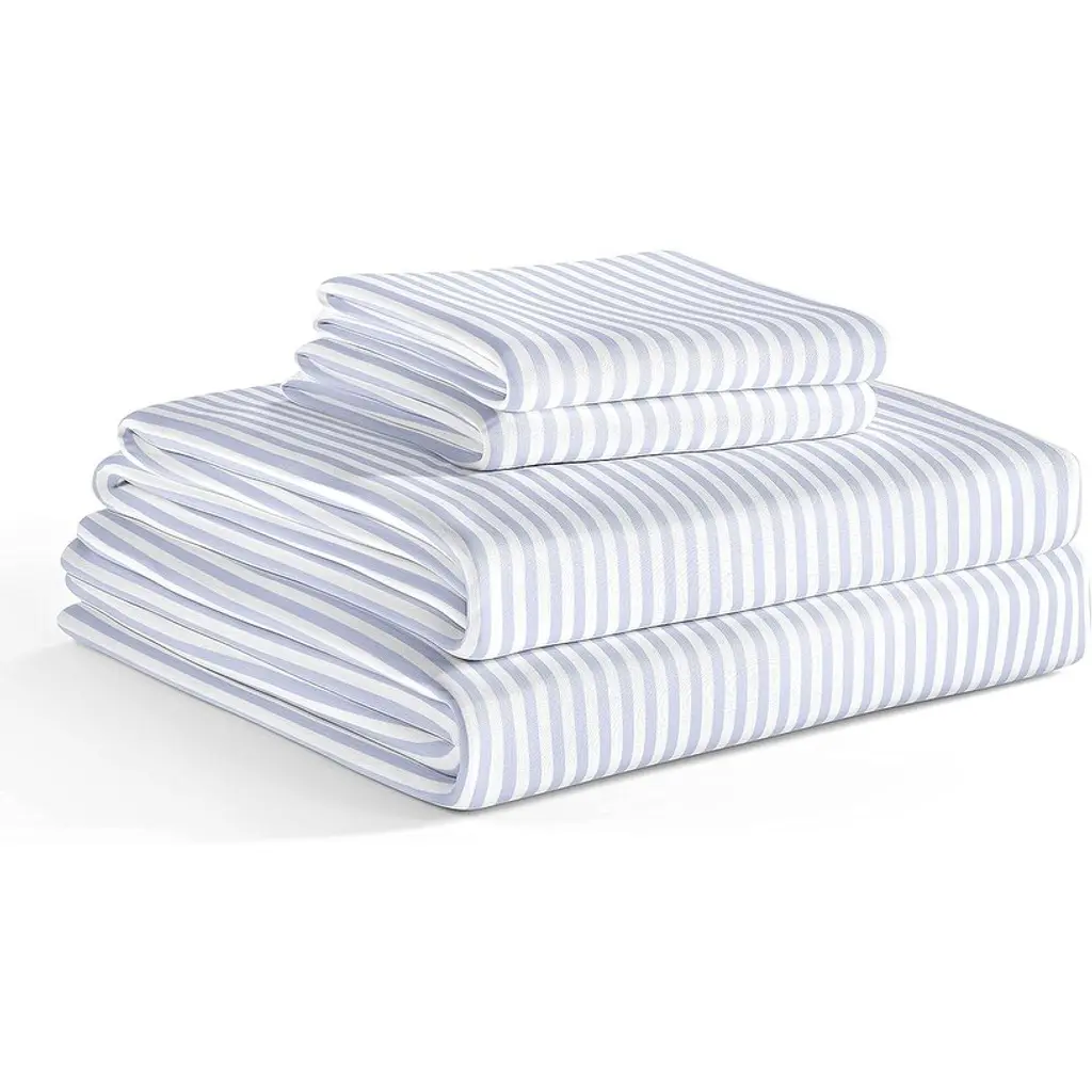 Cgk Linens Kids 4 Piece Printed Microfiber Easy Fit Cute Bed Sheet Set - Blue Stripes - Queen