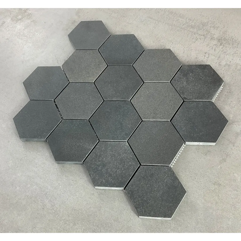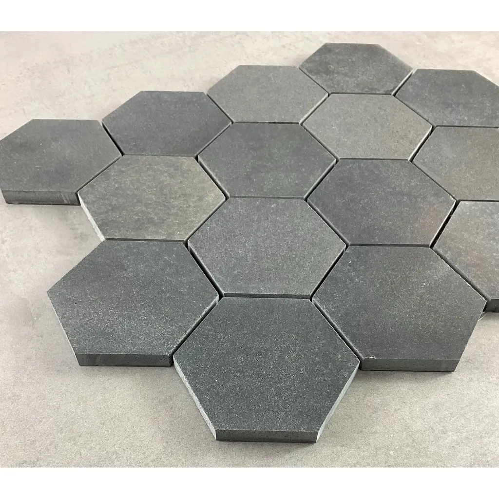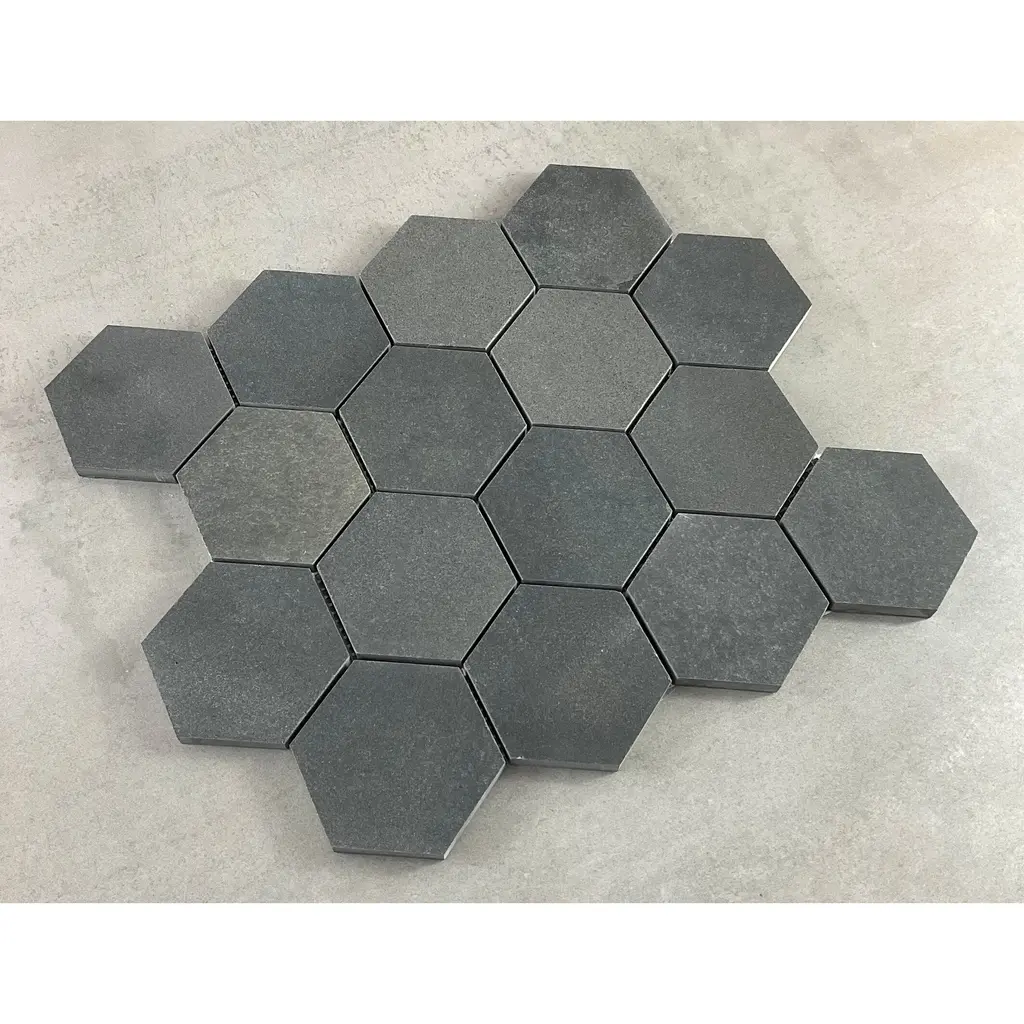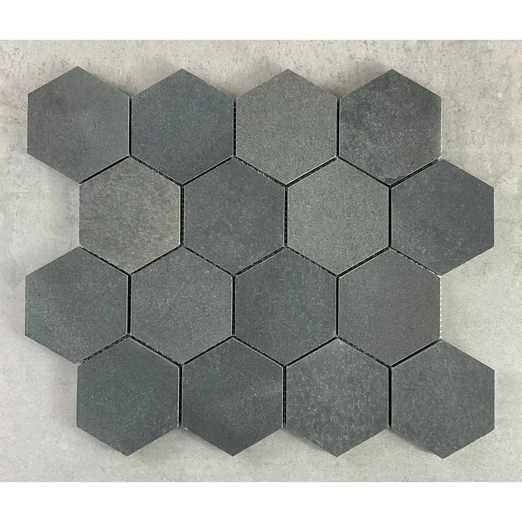 Color: Charcoal Marble Style: 3" Hexagon Material: Natural Marble Overall Product Weight: 4 lb. Dimensions Mosaic Sheet: 13.75'' W X 11.5'' L Individual Tile: 3" W x 3" L Overall Thickness: 0.32Surface Area per Carton: 10 SqFt Mesh-Mounted Tiles Installation Area: Kitchen Backsplash, Fireplace Front, Bathroom Wall, Shower Wall, Bathroom Floor, Shower Floor